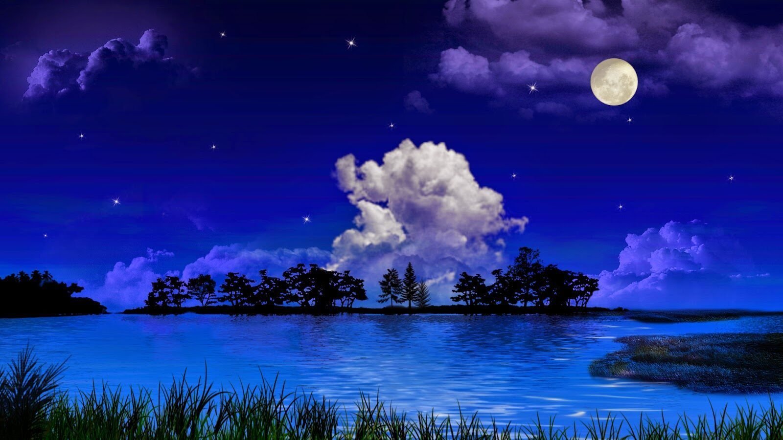 Ночное озеро с луной