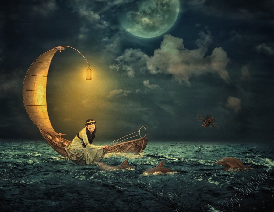 Лодка ночь Луна