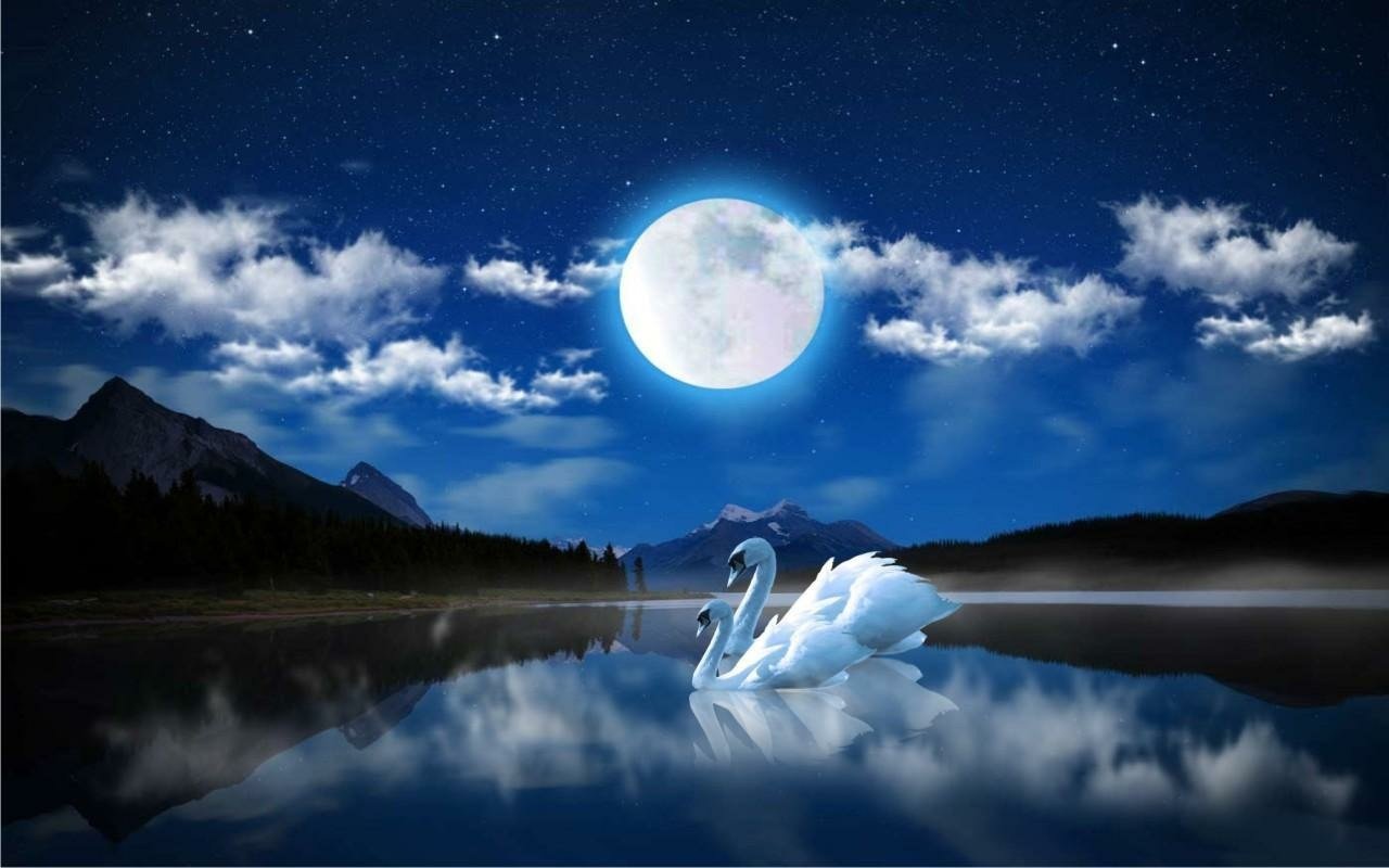 Лебедь под луной