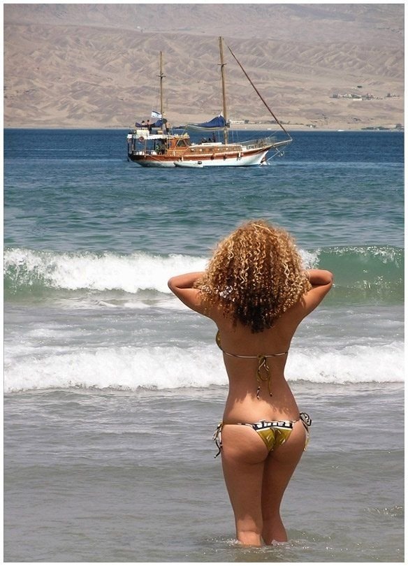 ![Прикол женщина на море]()