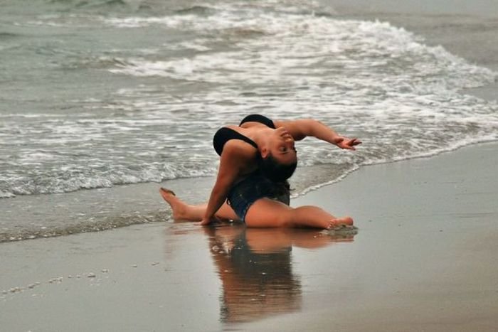 ![Йога на пляже девушка]()