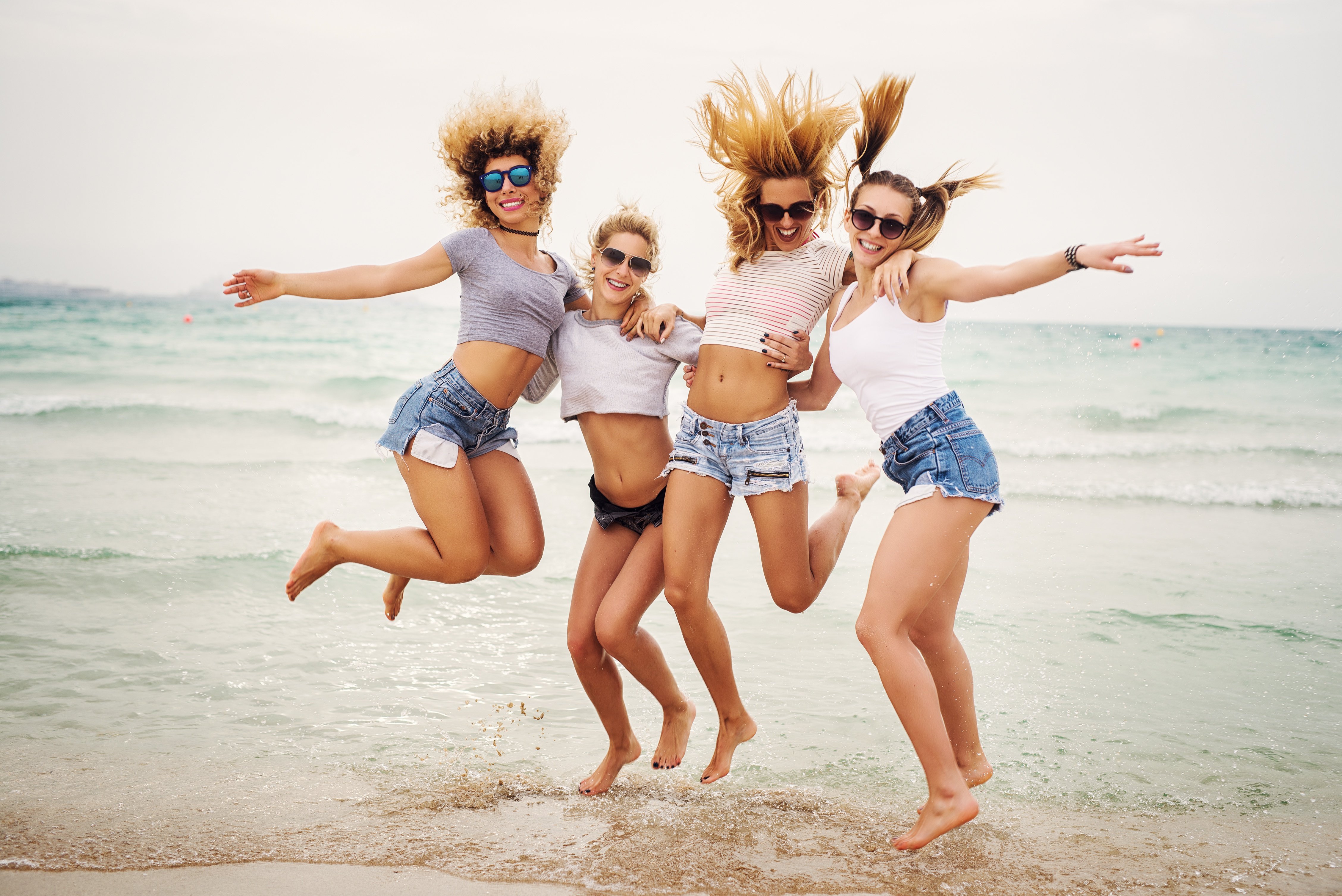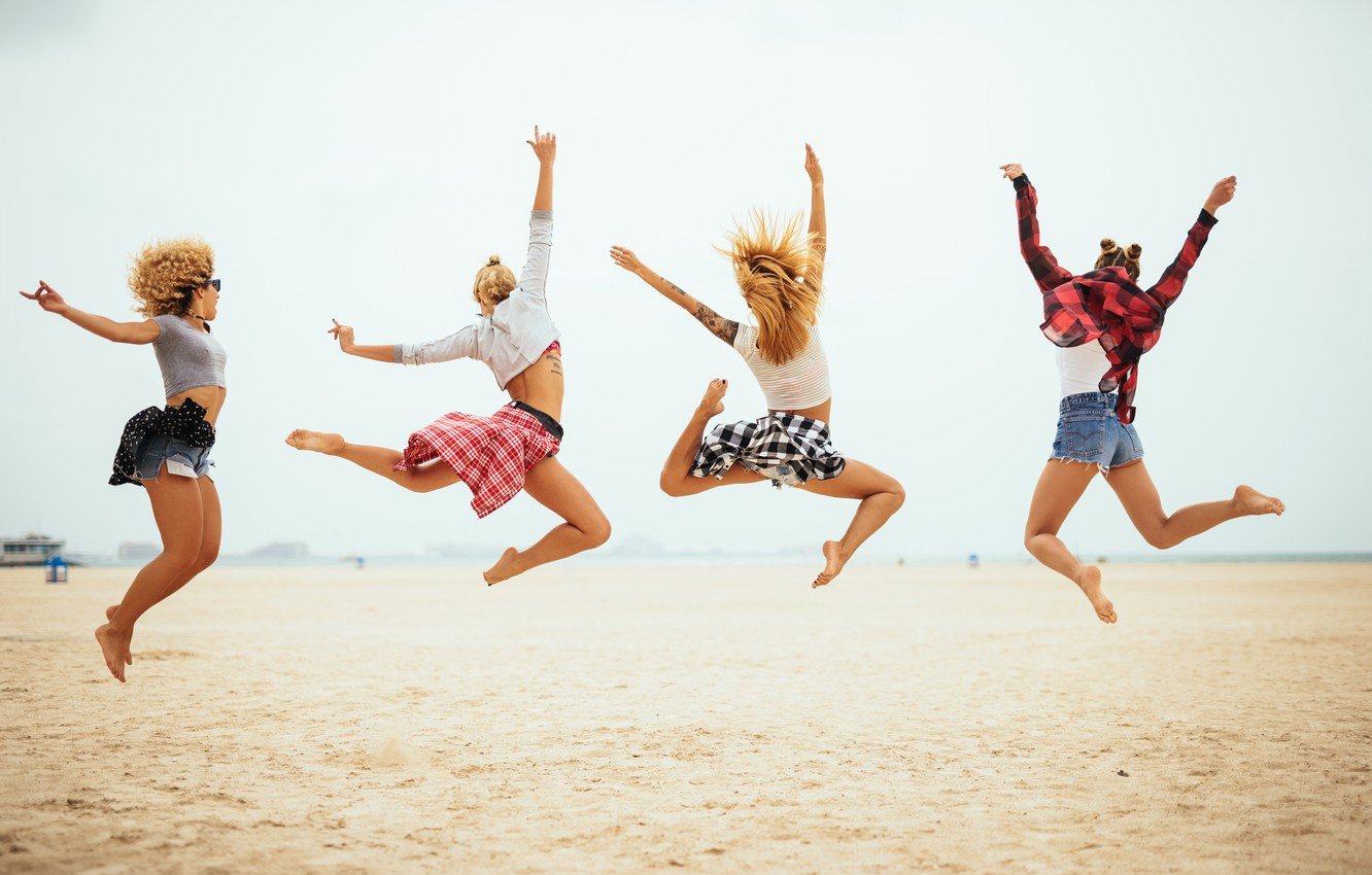 Веселые девчонки на пляже