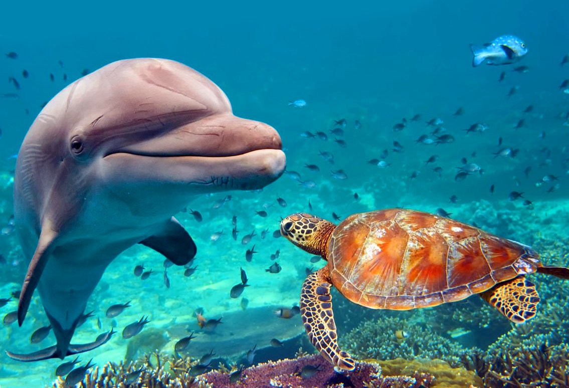 Подводный мир океан Дельфин черепаха