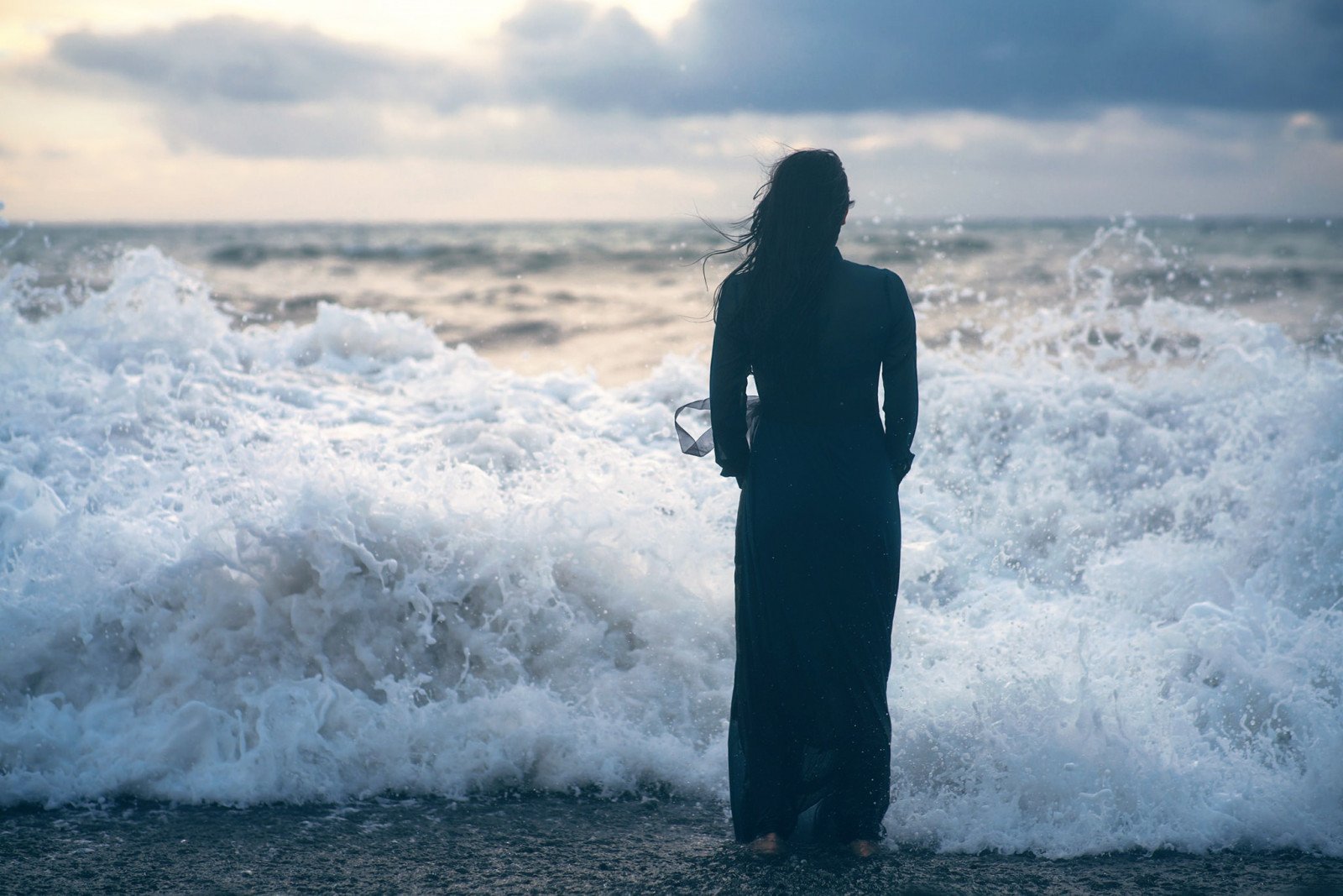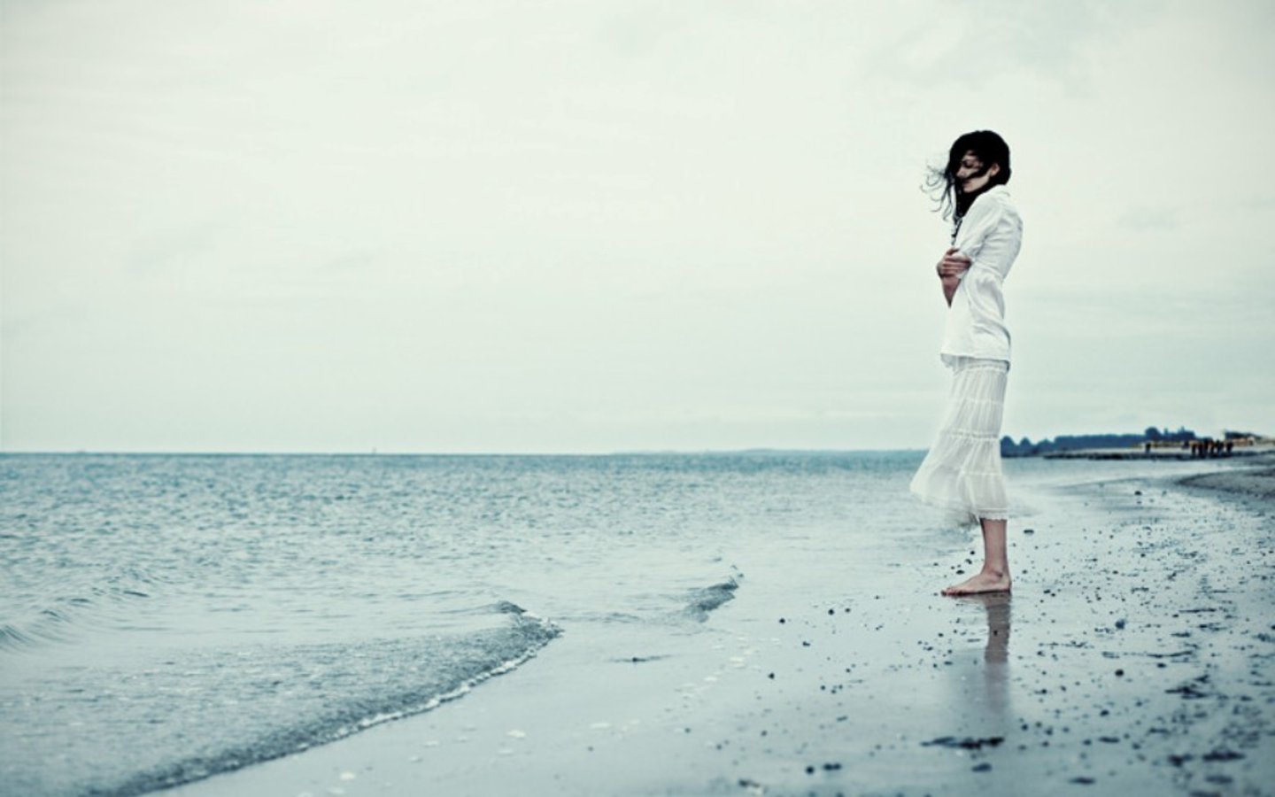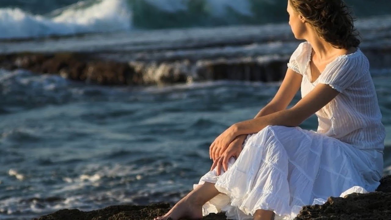 На картинке изображена одинокая женщина, стоящая у моря и глядящая вдаль. Ее фигура выделяется на фоне бескрайней голубой воды и неба, создавая атмосферу уединения и размышлений. Взгляд женщины наполнен тайной и меланхолией, словно она уносится далеко за горизонт, куда-то в свои мысли и воспоминания. Эта картина передает чувство уединения и спокойствия, заставляя зрителя задуматься о тайнах и загадках, которые скрывает океан.