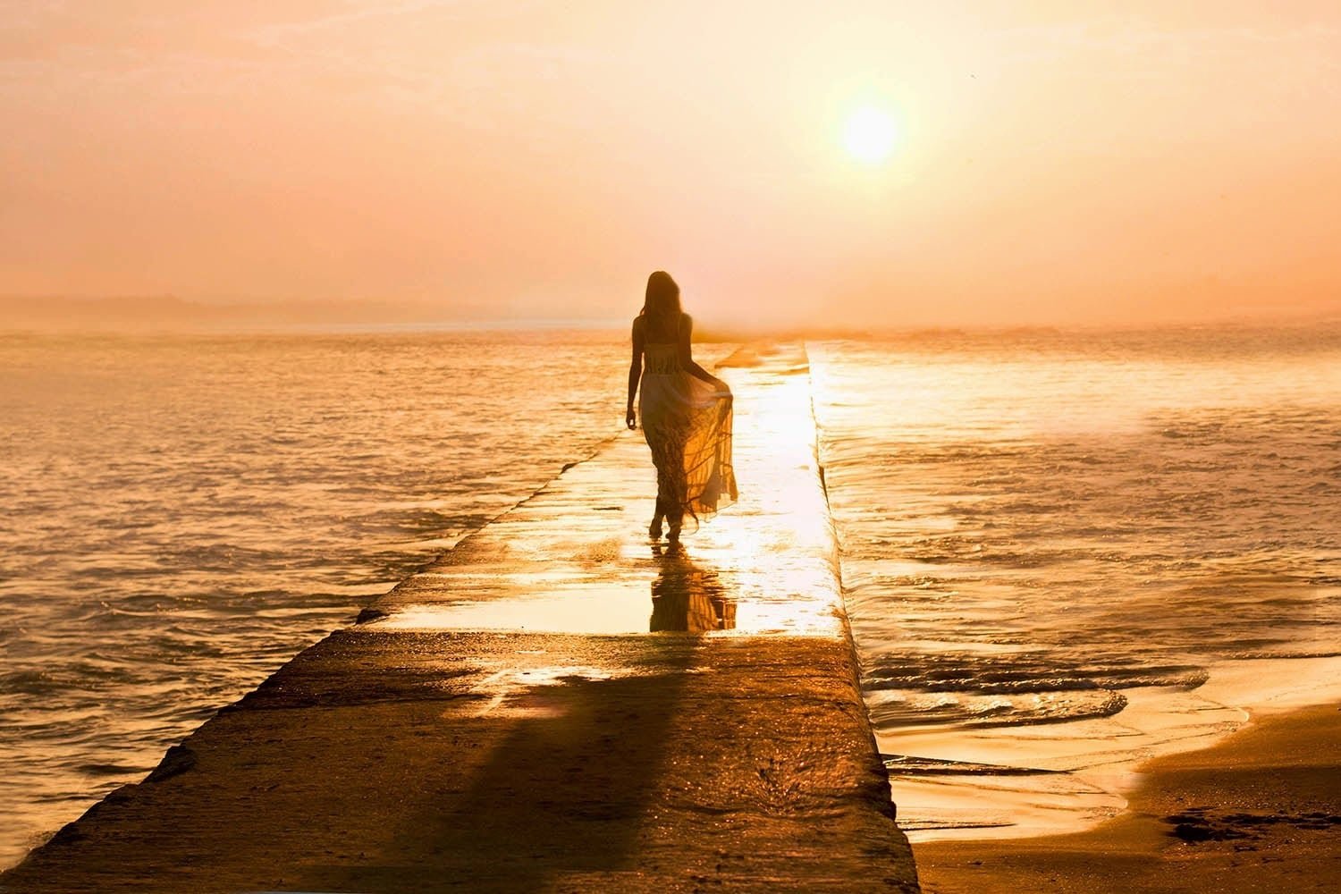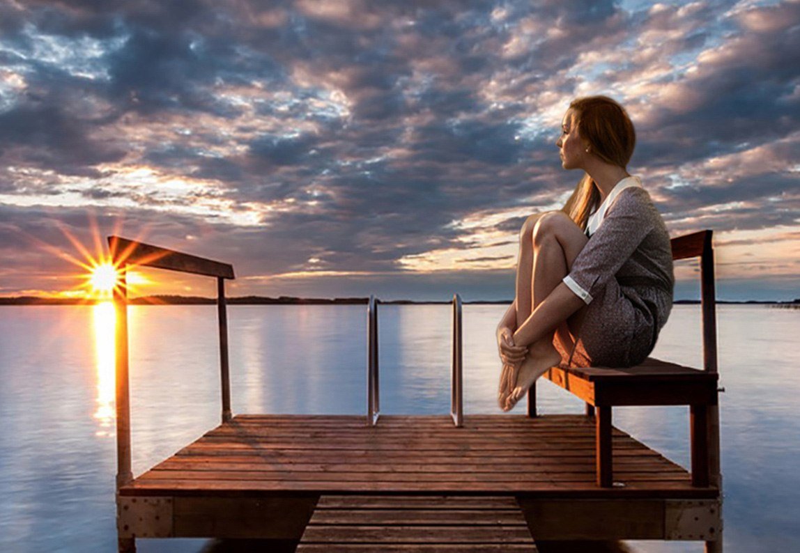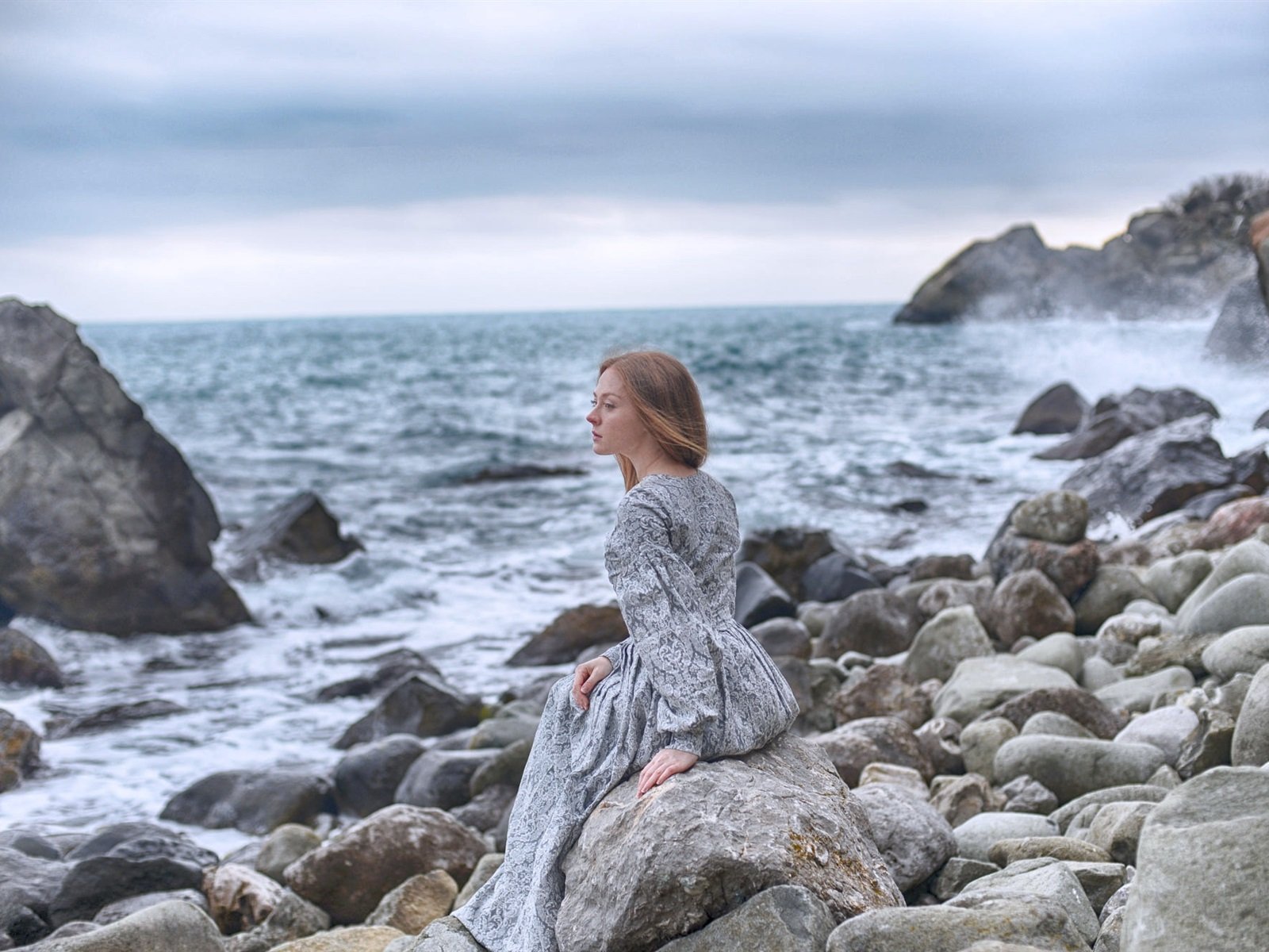 На картинке изображена одинокая женщина, стоящая у моря и глядящая вдаль. Ее фигура выделяется на фоне бескрайней голубой воды и неба, создавая атмосферу уединения и размышлений. Взгляд женщины наполнен тайной и меланхолией, словно она уносится далеко за горизонт, куда-то в свои мысли и воспоминания. Эта картина передает чувство уединения и спокойствия, заставляя зрителя задуматься о тайнах и загадках, которые скрывает океан.