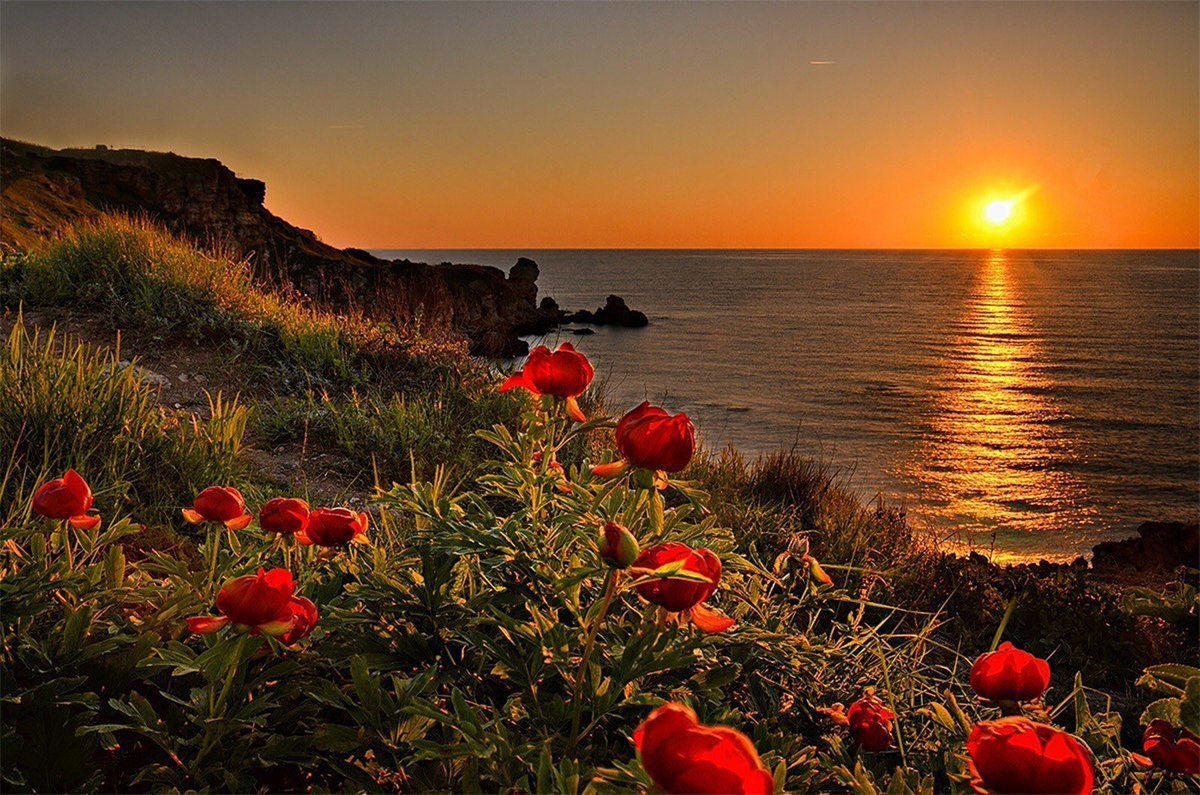 Море цветы рассвет