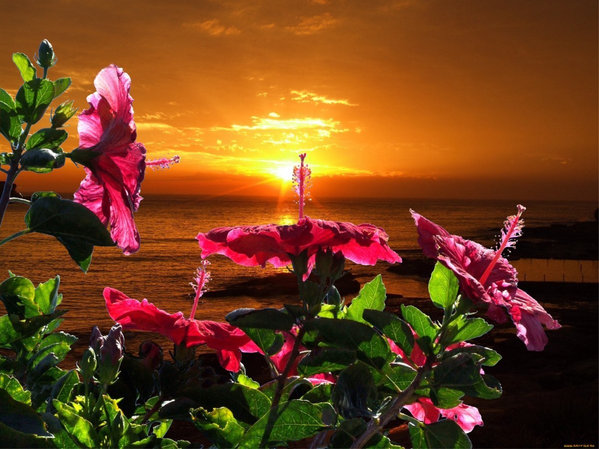 ![Море цветы рассвет]()