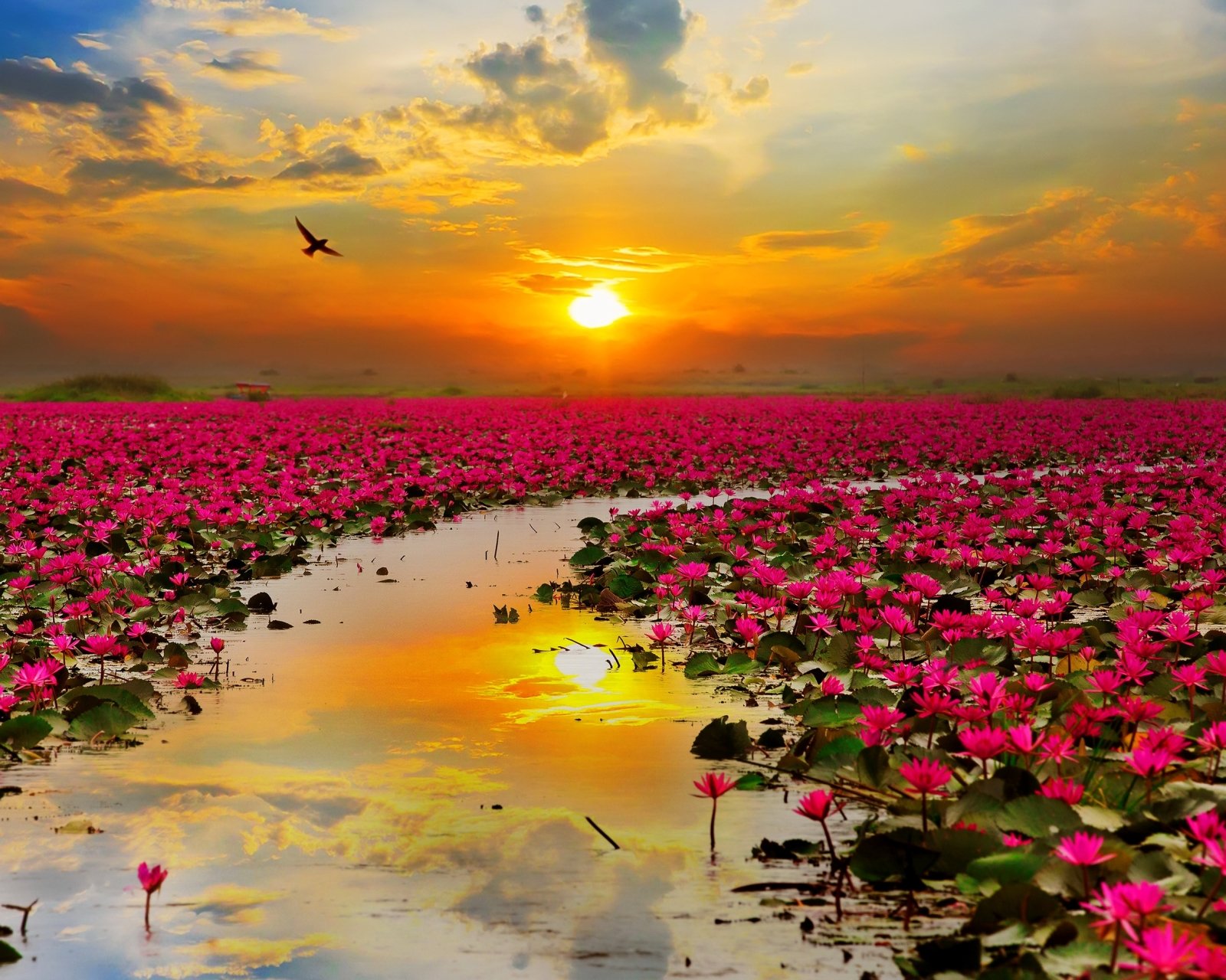 Море цветов на закате