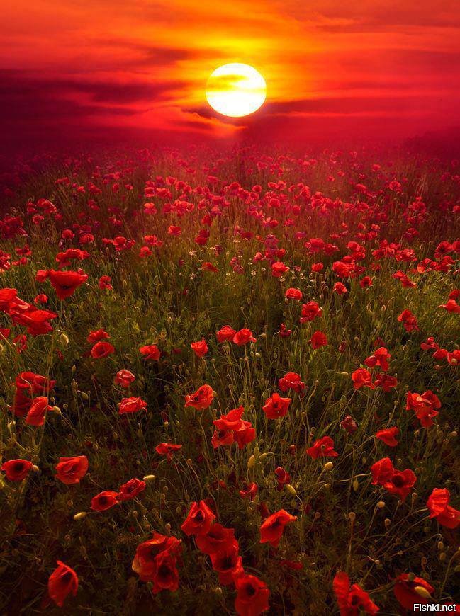![Маковое поле на закате]()