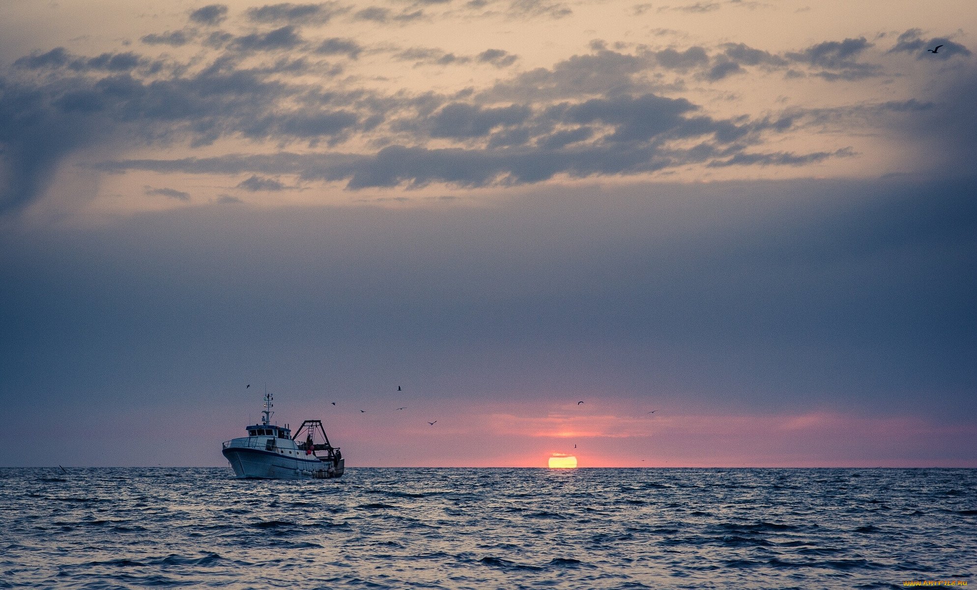 ![Корабль на закате]()