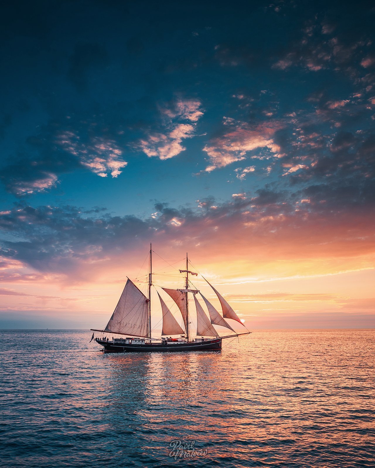 ![Парусник на закате]()