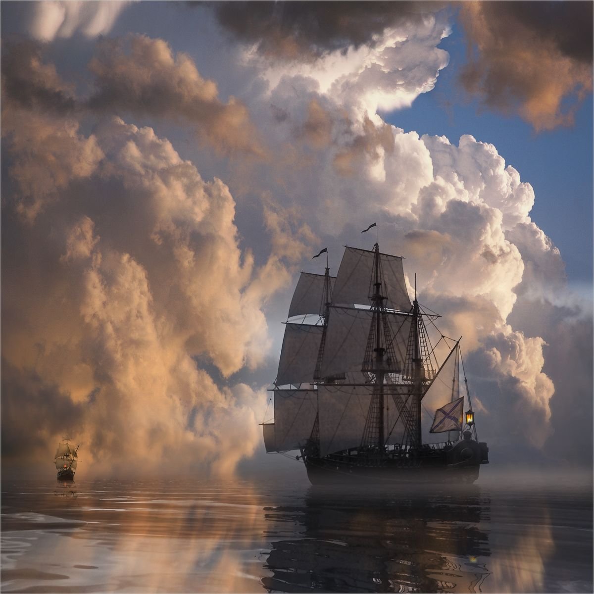 ![Парусник в облаках]()