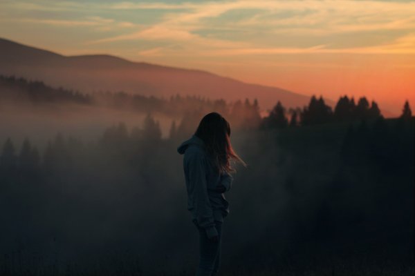 ![Силуэт девушки в тумане]()