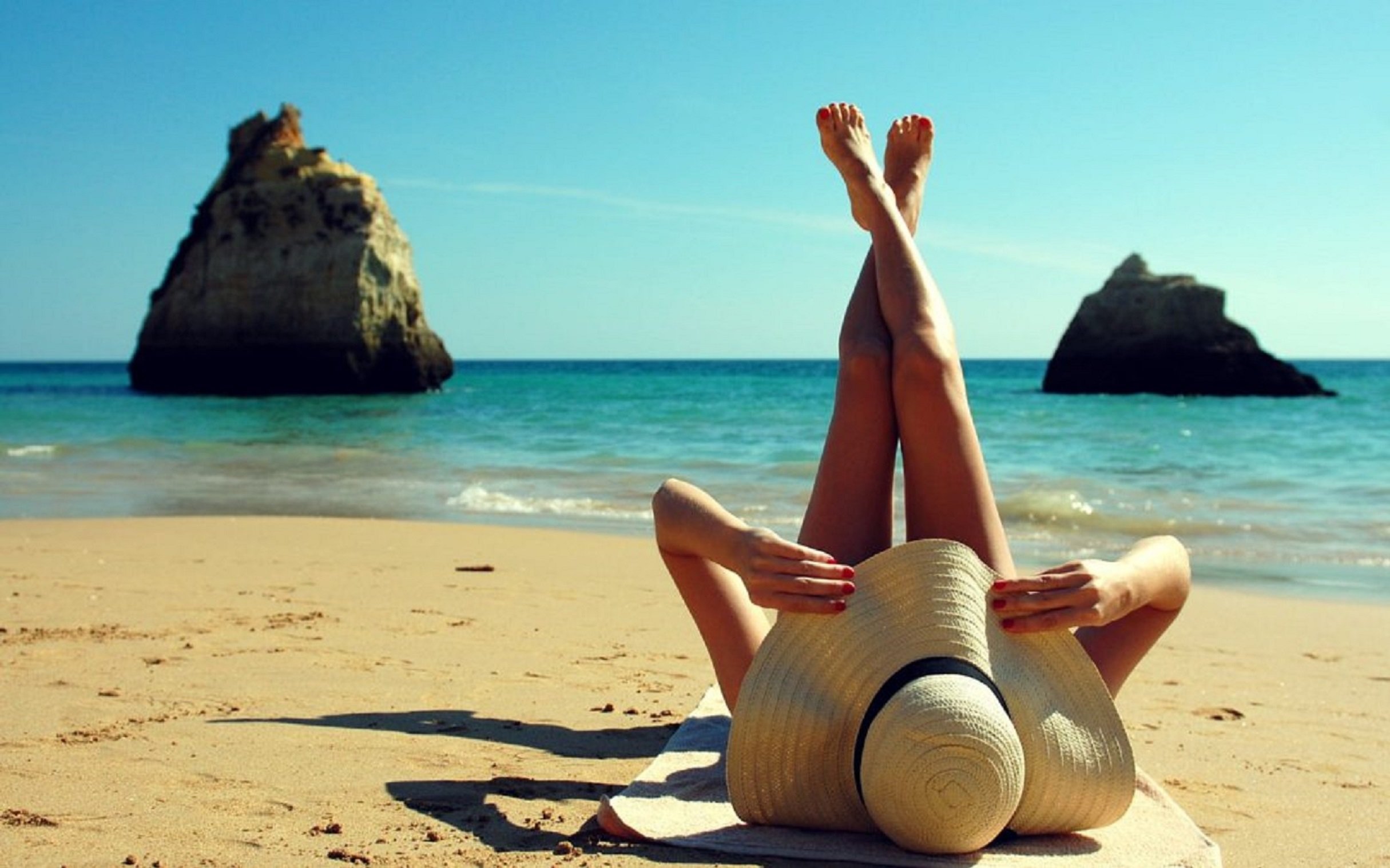 ![Лежит на пляже]()