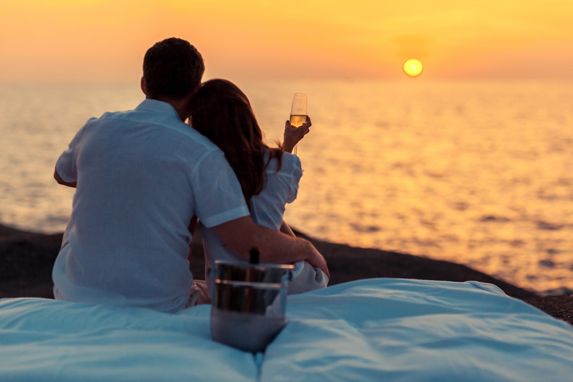 Двое на закате у моря