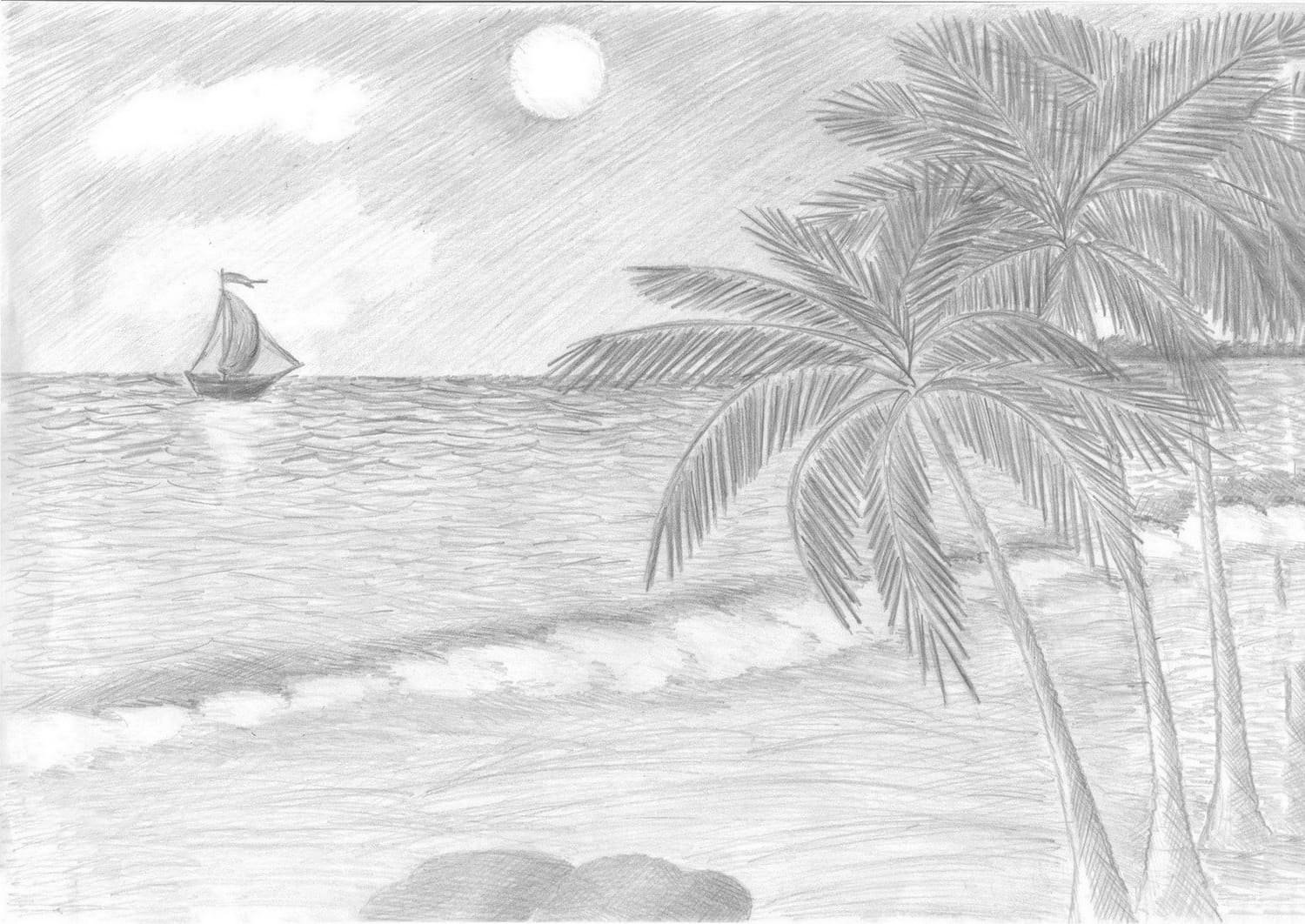 Морские пейзажи карандашом для детей