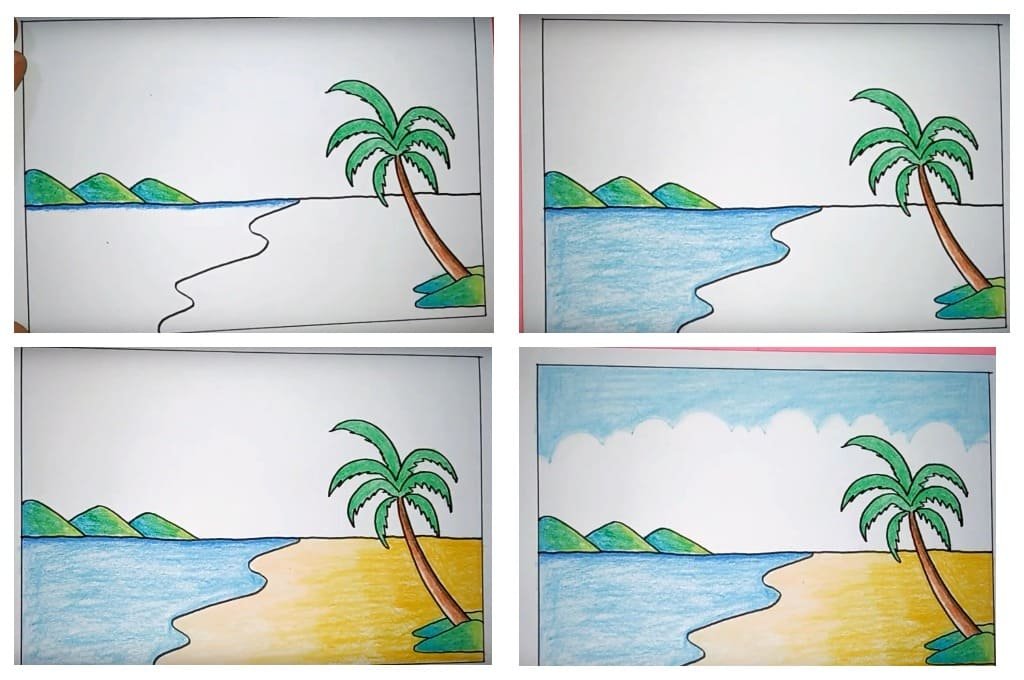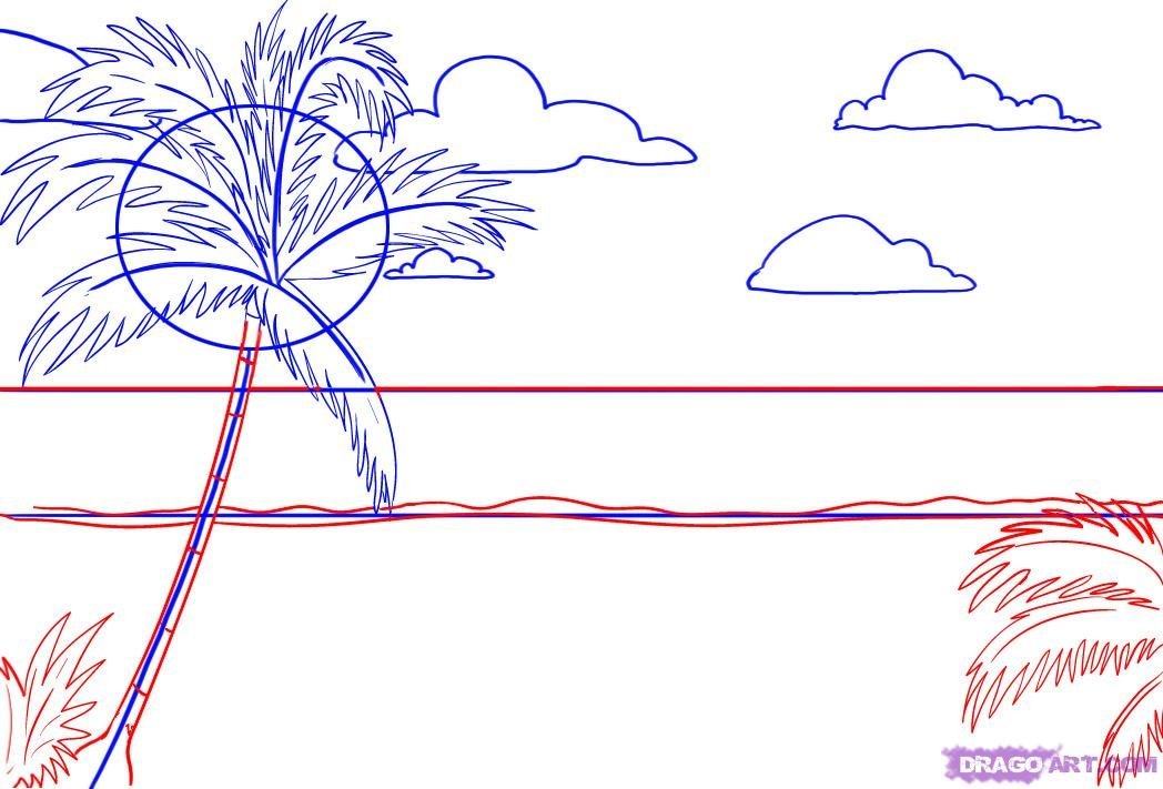 Поэтапное рисование пляжа