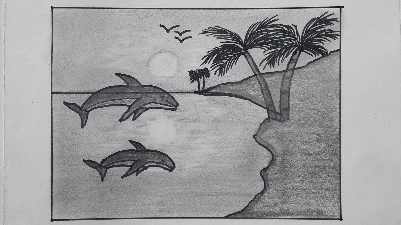 Рисунки моря карандашом для срисовки
