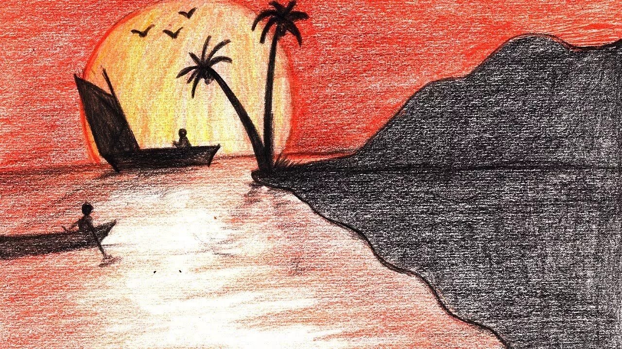 Рисунки для срисовки закат карандашом
