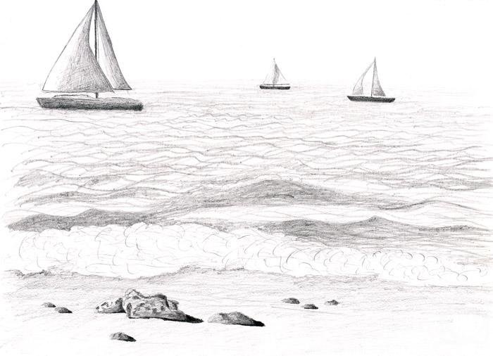 Морской пейзаж карандашом для начинающих