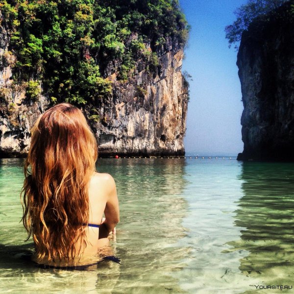 Рыжие волосы на море
