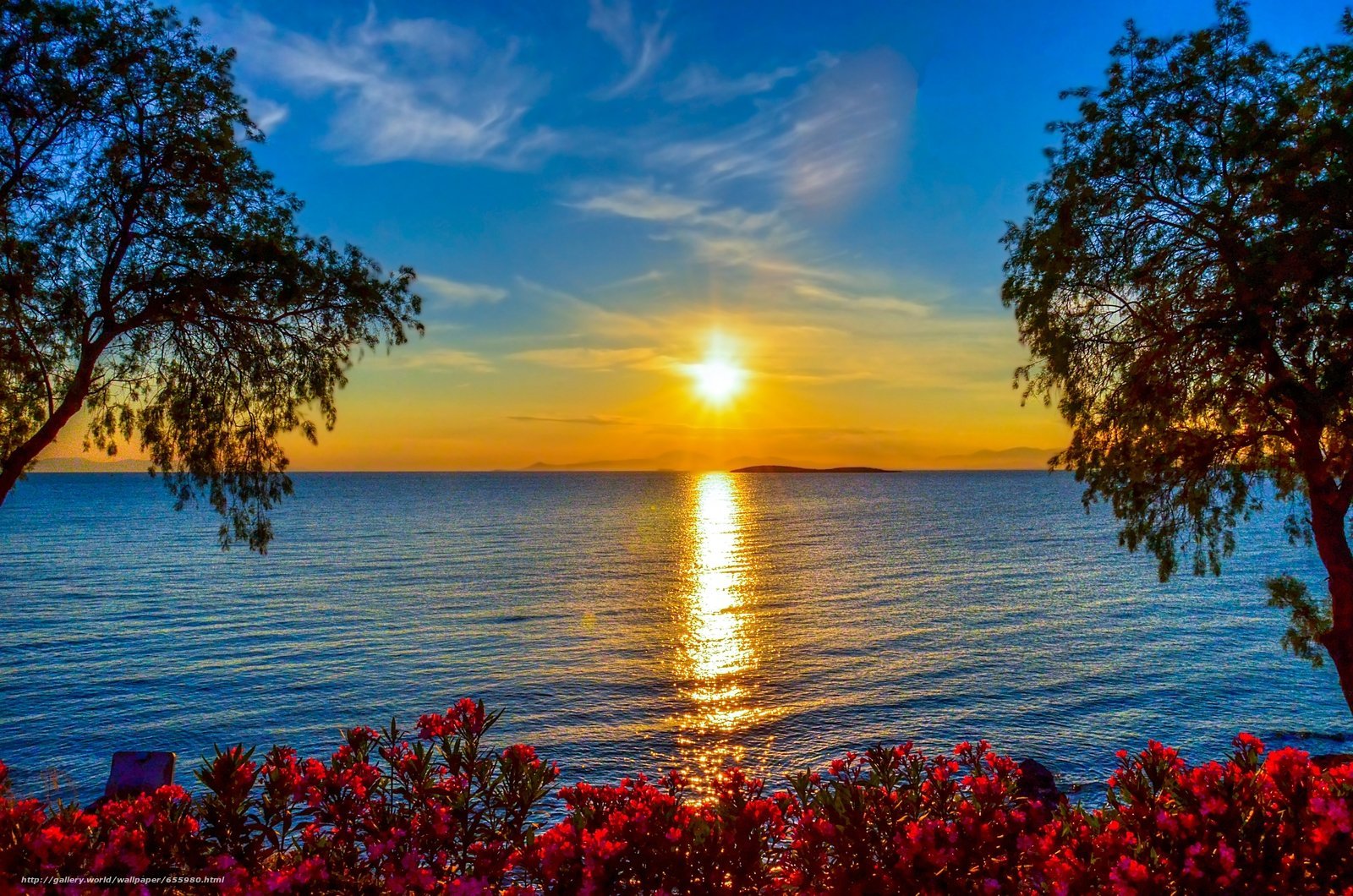 Вечер море закат и цветы