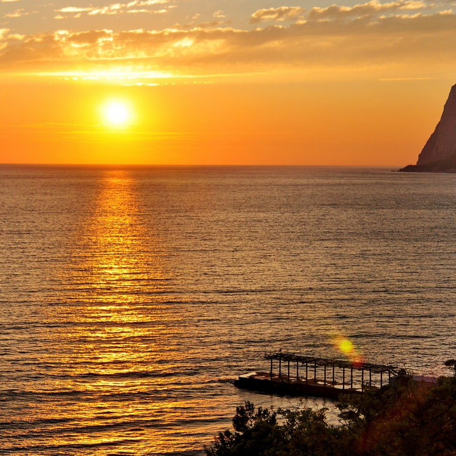 ![Закат над морем]()