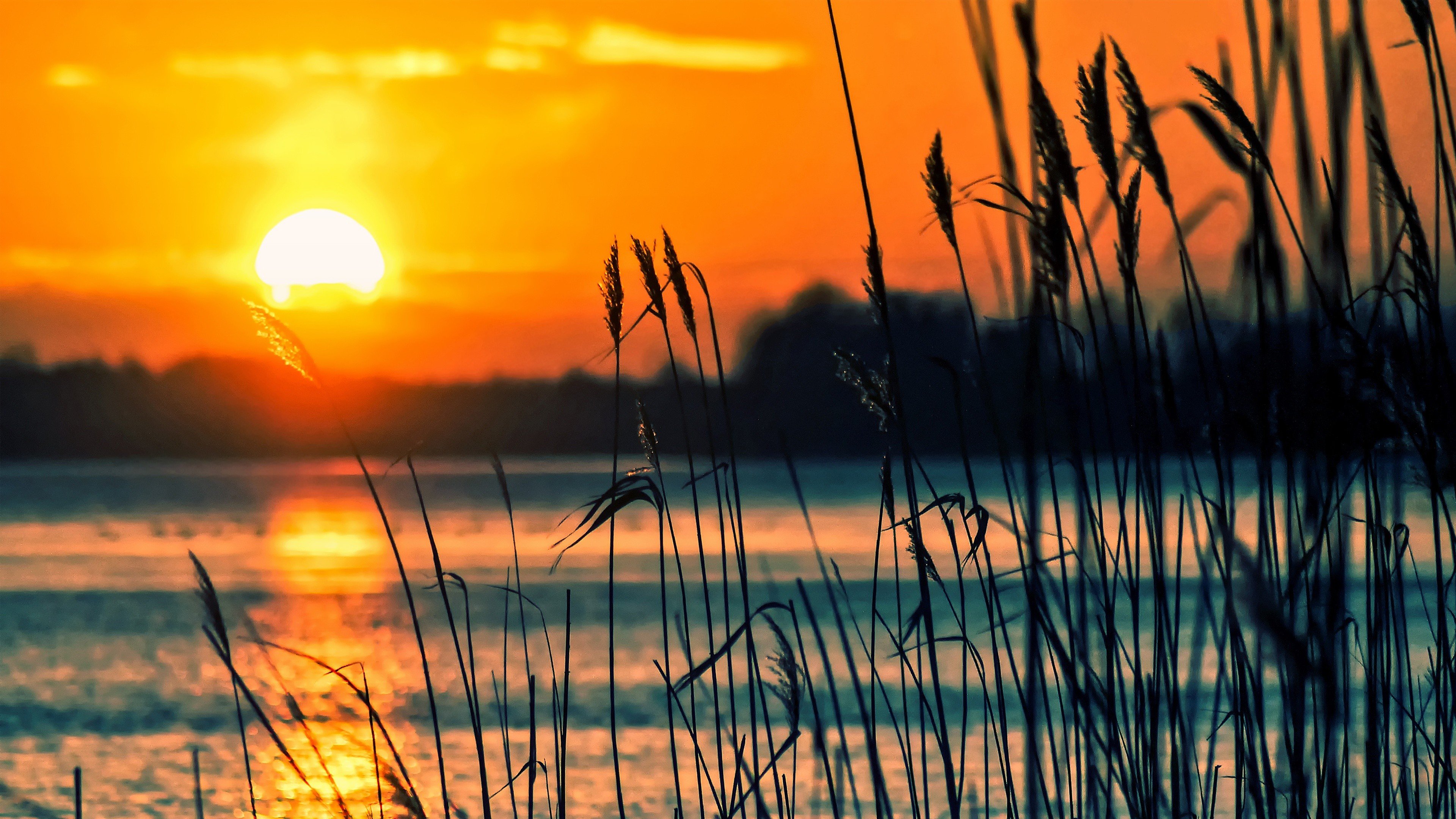 ![Закат на озере]()