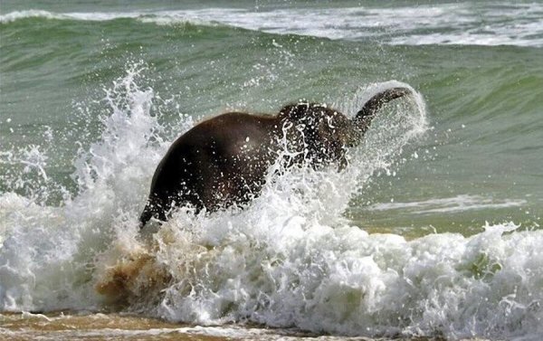 Слон купается в море