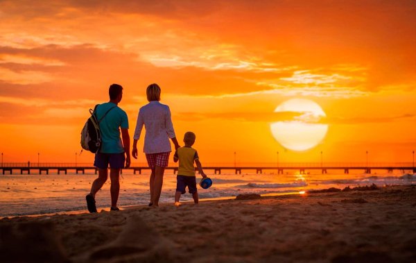 Семья море закат
