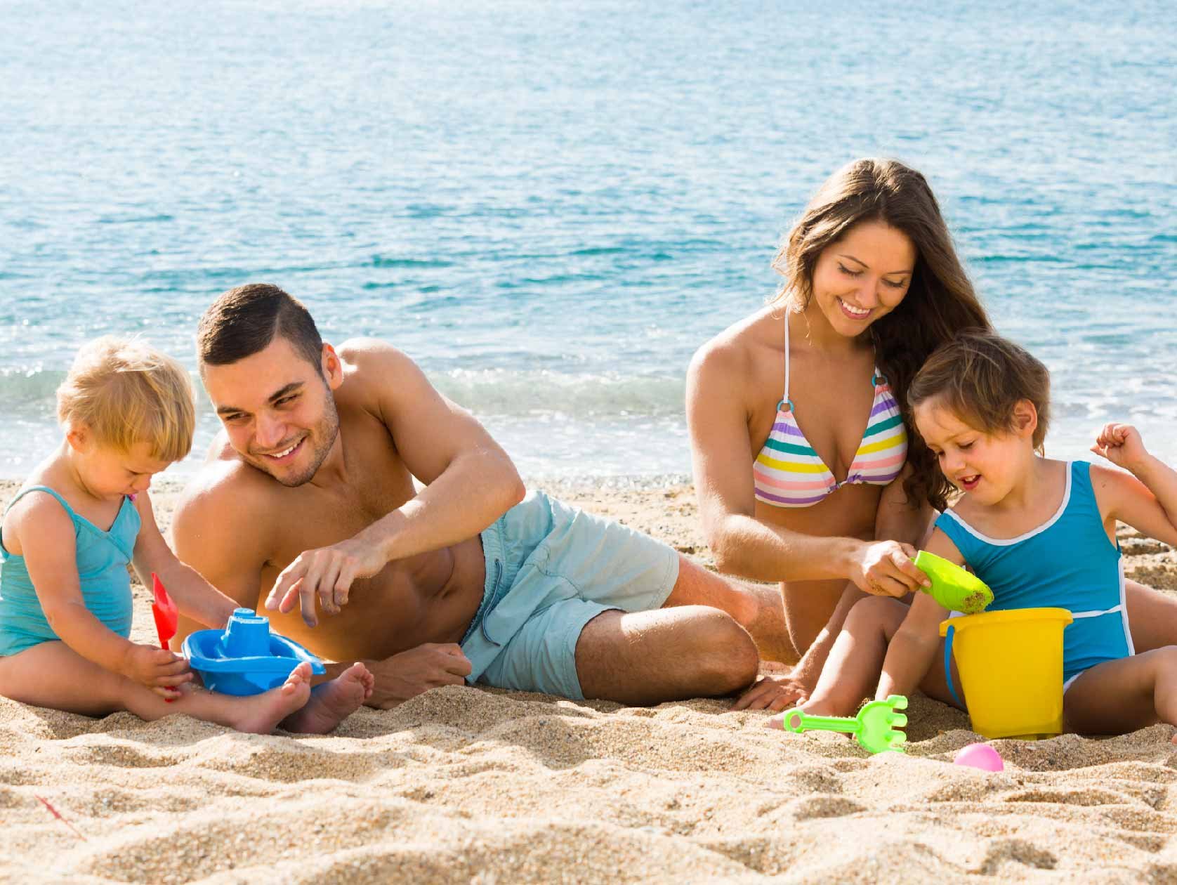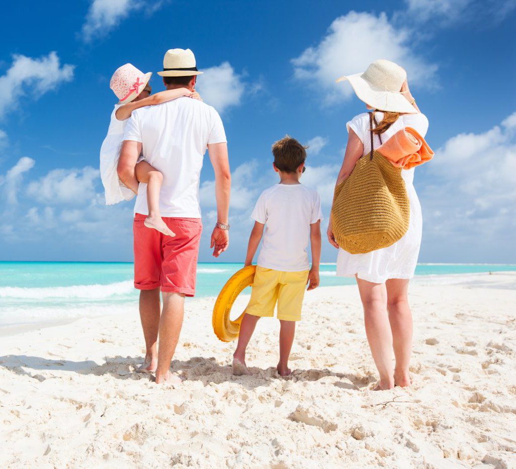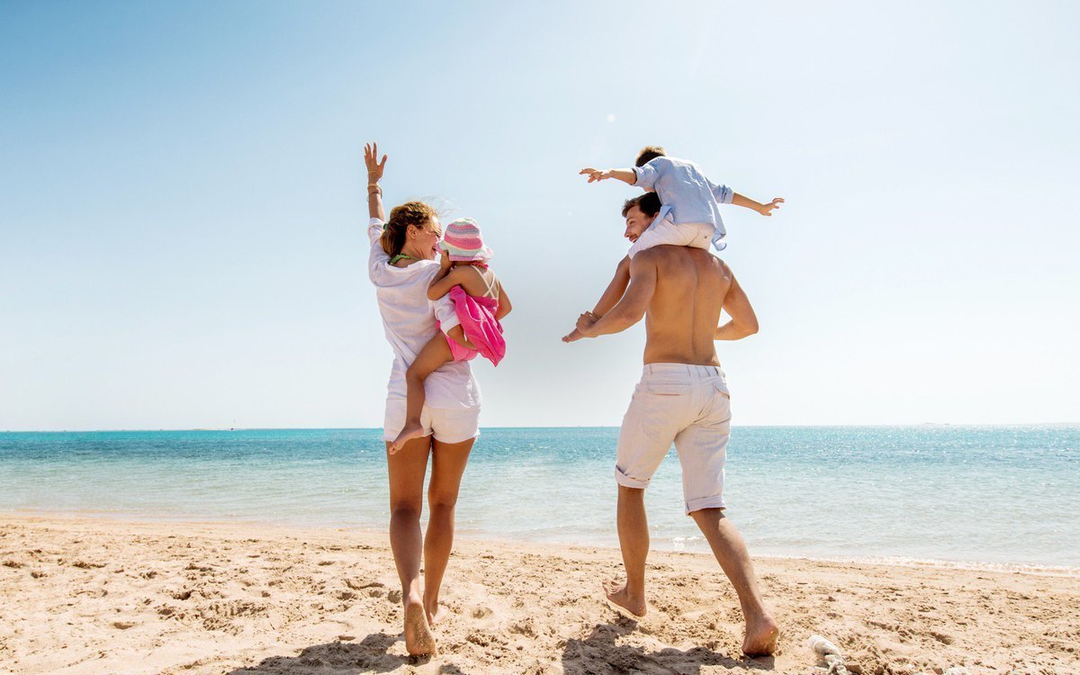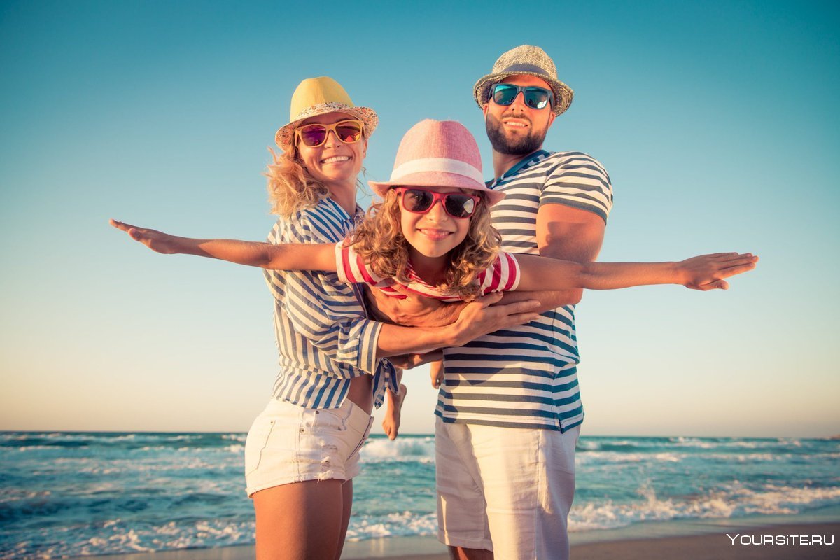 Семья на отдыхе на море