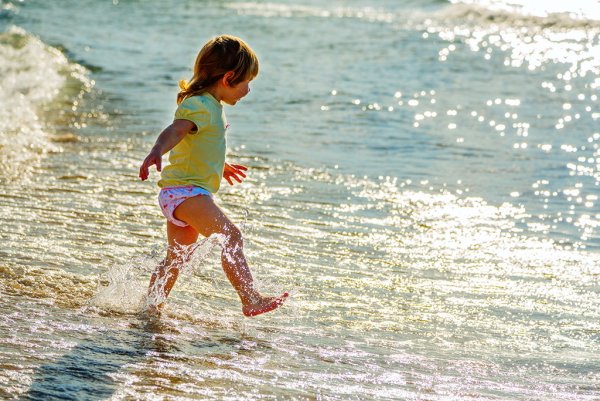 ![Дети бегут в море]()