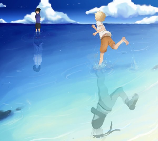 Дети бегут в море