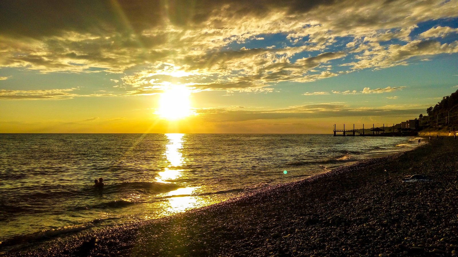 На фоне бескрайних голубых волн Черного моря ярко сверкает солнце, заливая все вокруг теплым золотистым светом. Под его лучами играют отблески на прибрежном песке, создавая манящие игры света и тени. Пляж приглашает пройтись по мягкому песку, насладиться прохладой воды и ощутить ласковый прибой. Эти картины Черного моря с солнцем на пляже запоминаются своей красотой и напоминают о бесконечном лете и отдыхе у моря.