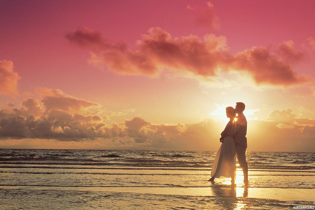 ![Влюбленные на закате]()