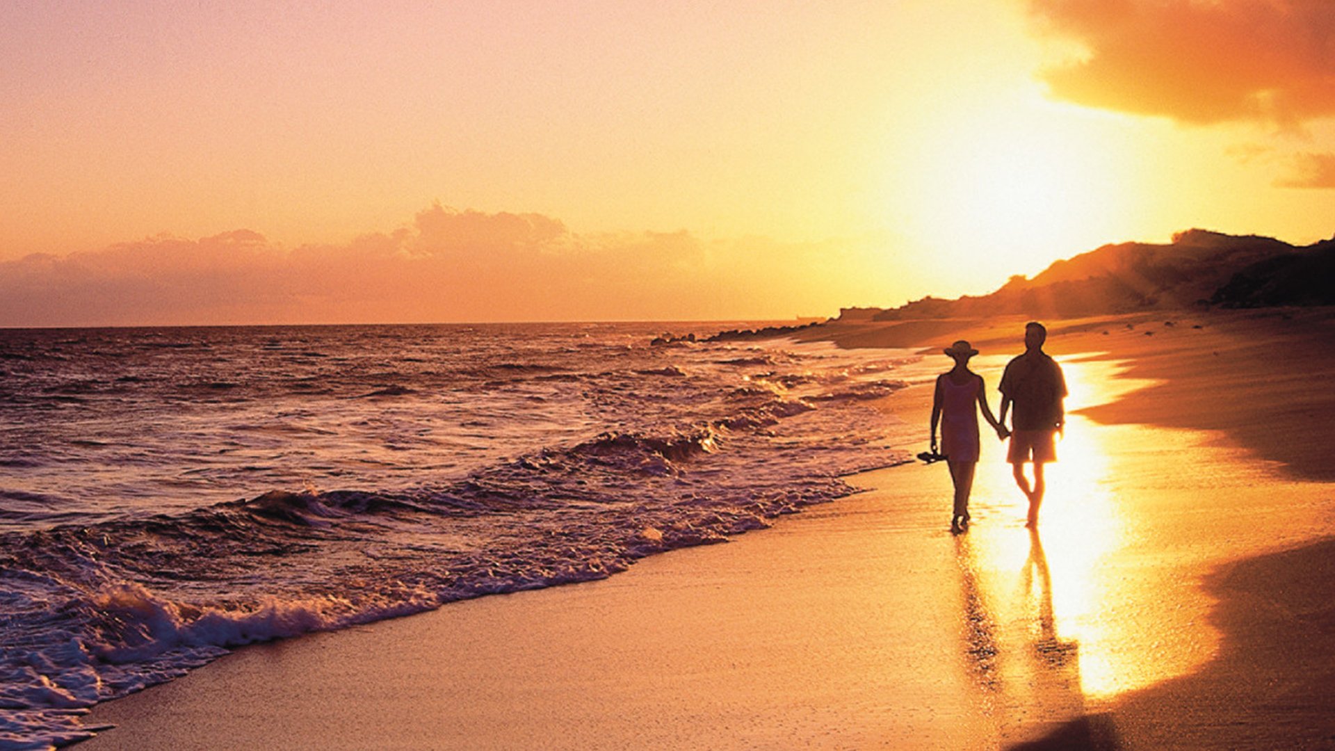 ![Прогулка по пляжу на закате]()