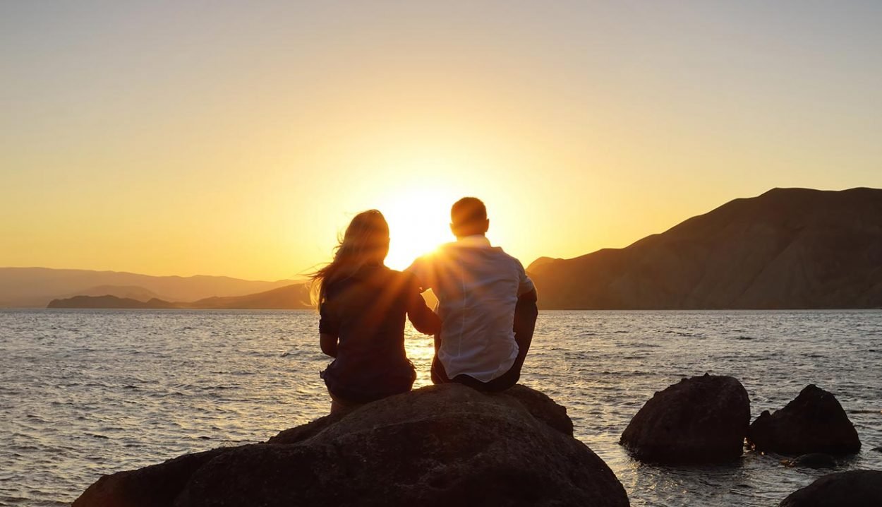 ![Мужчина и женщина на закате]()