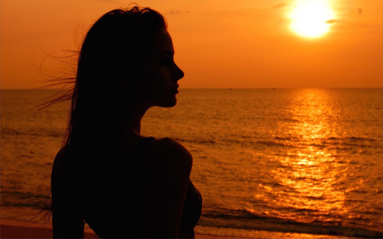 Девушка на закате у моря