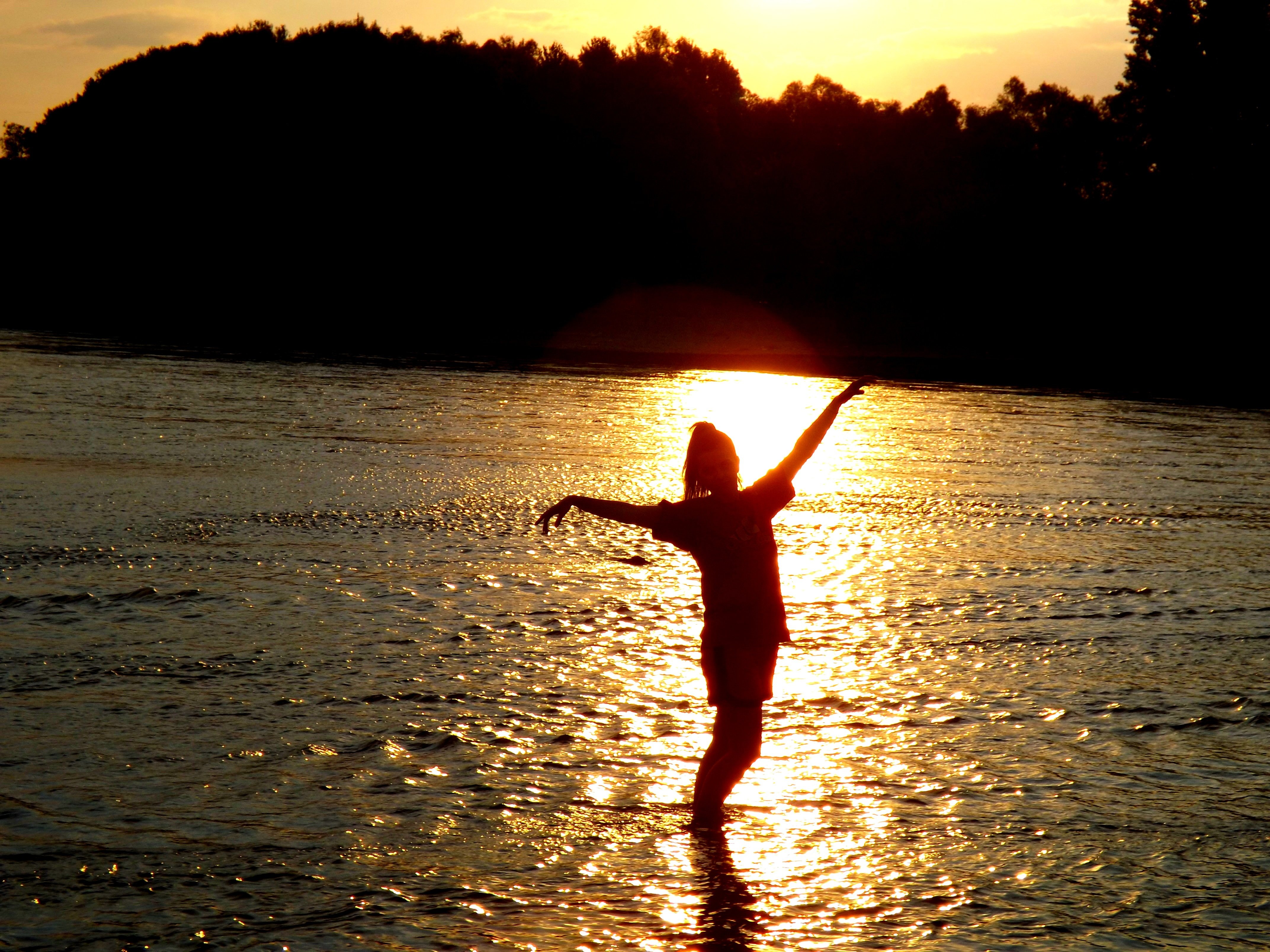 Девушка в воде на закате