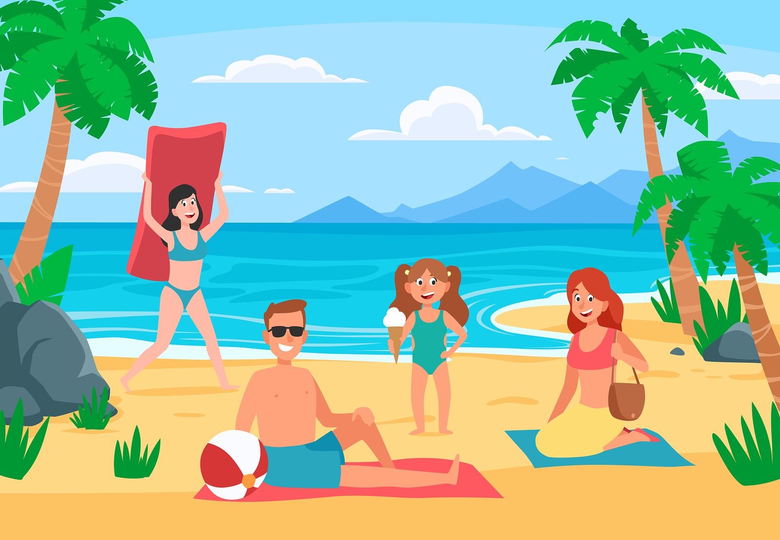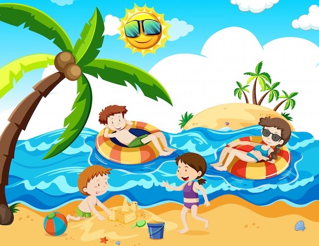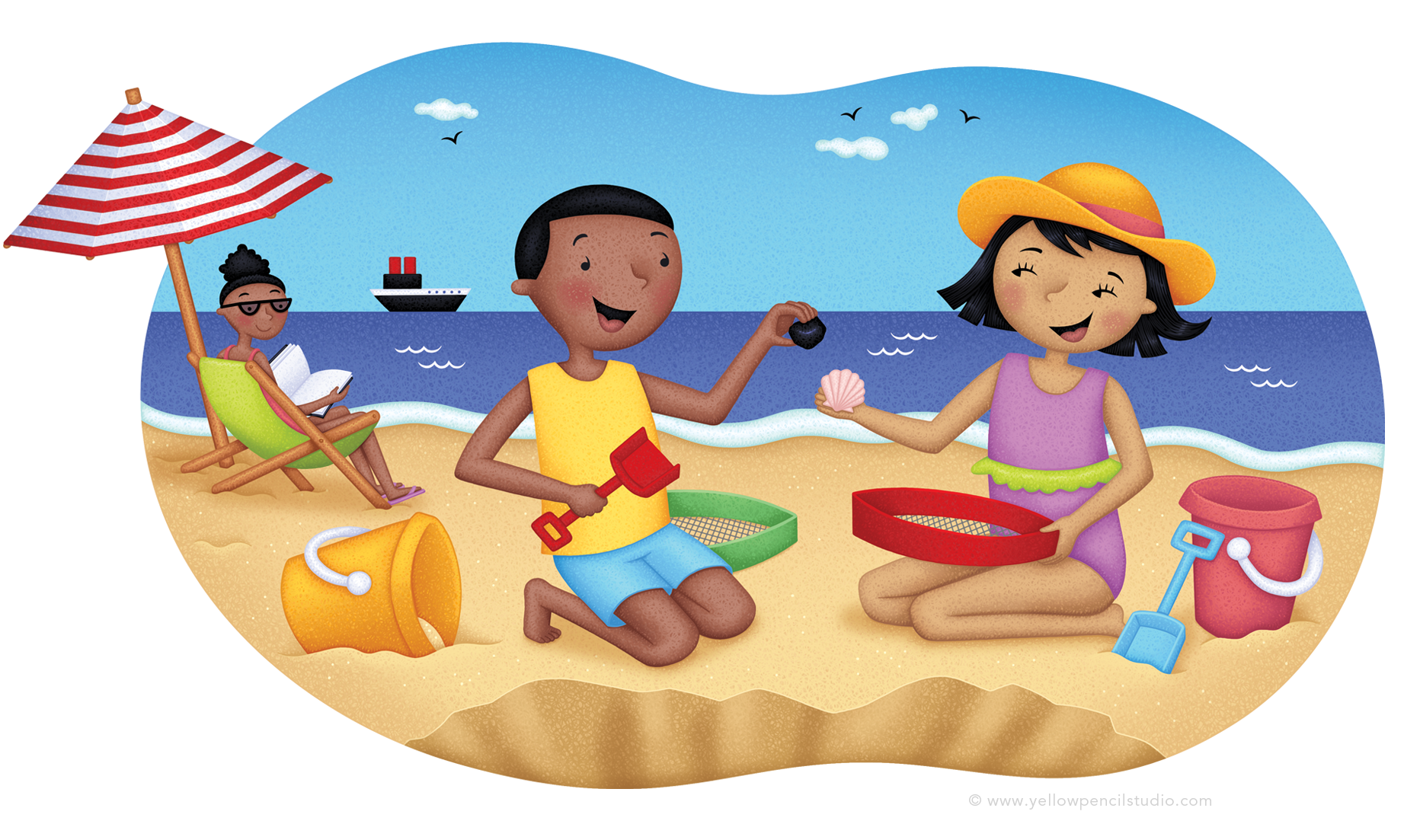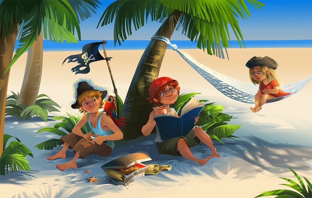 Дети на пляже мультяшные