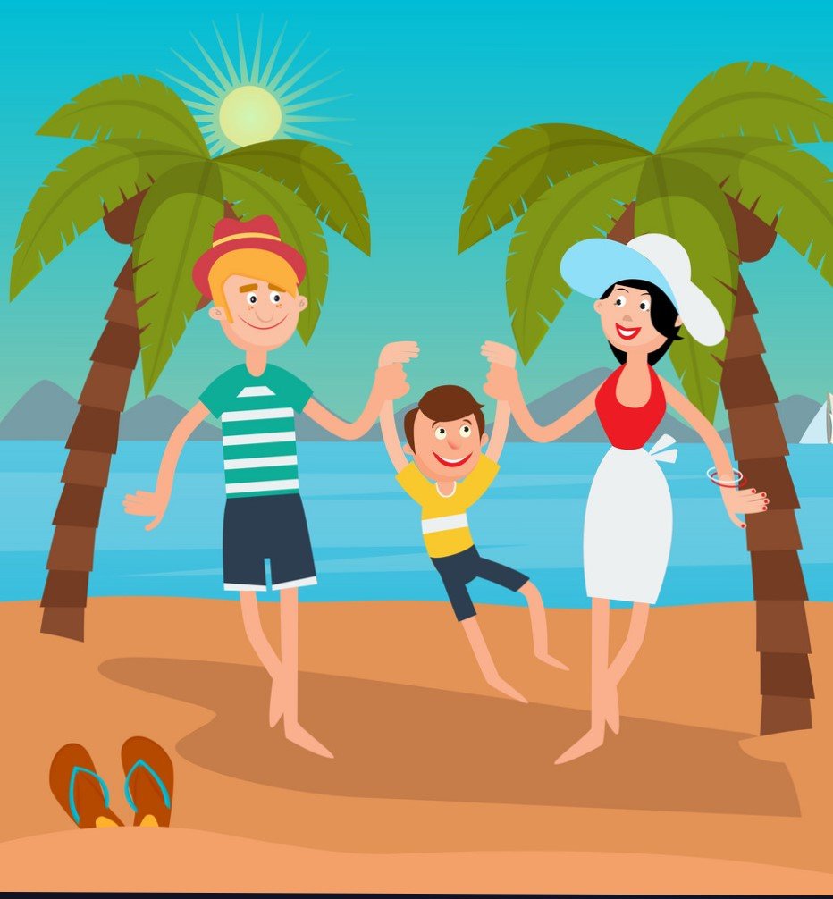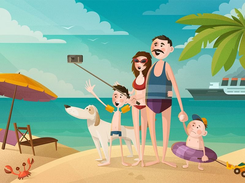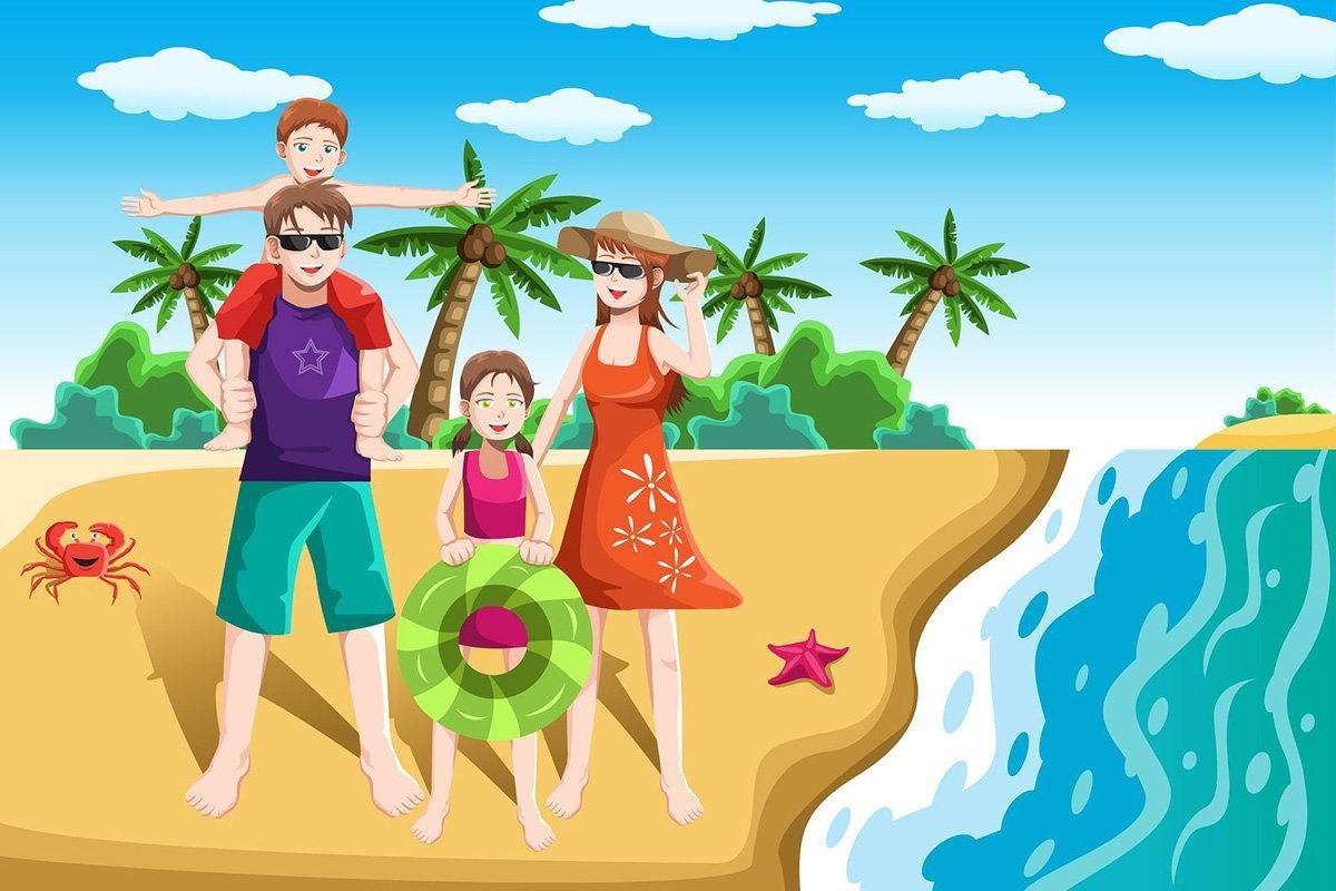 Мультяшная семья на отдыхе