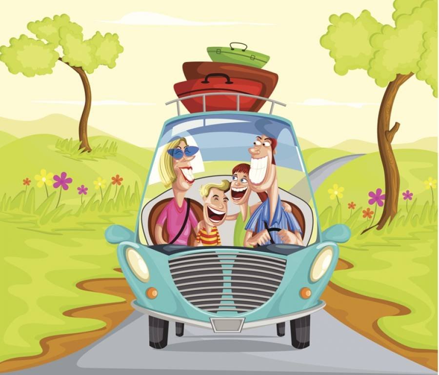Семья едет в отпуск на машине
