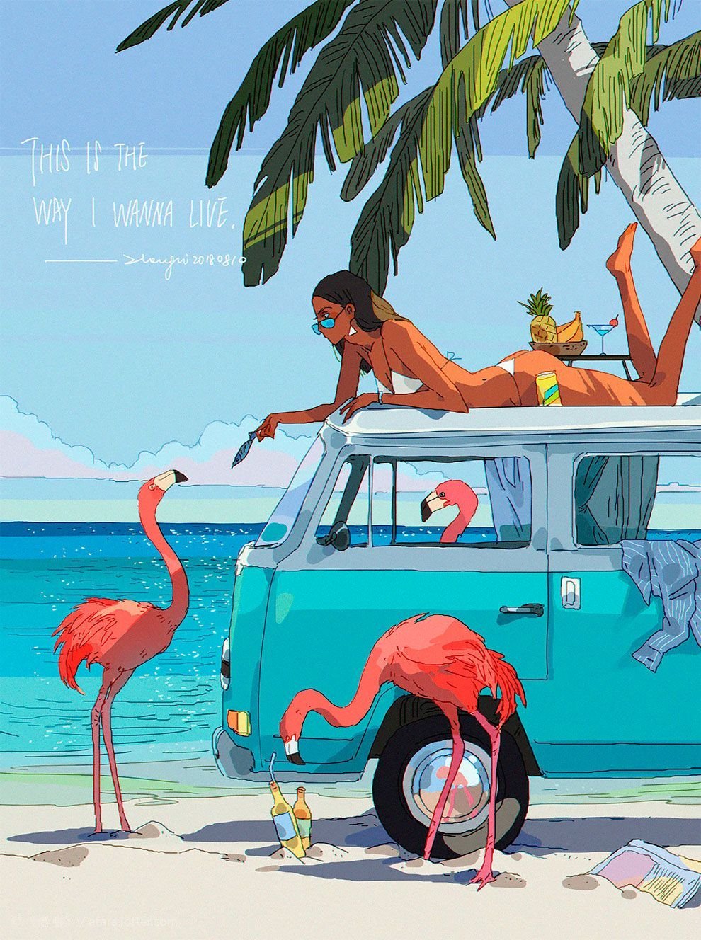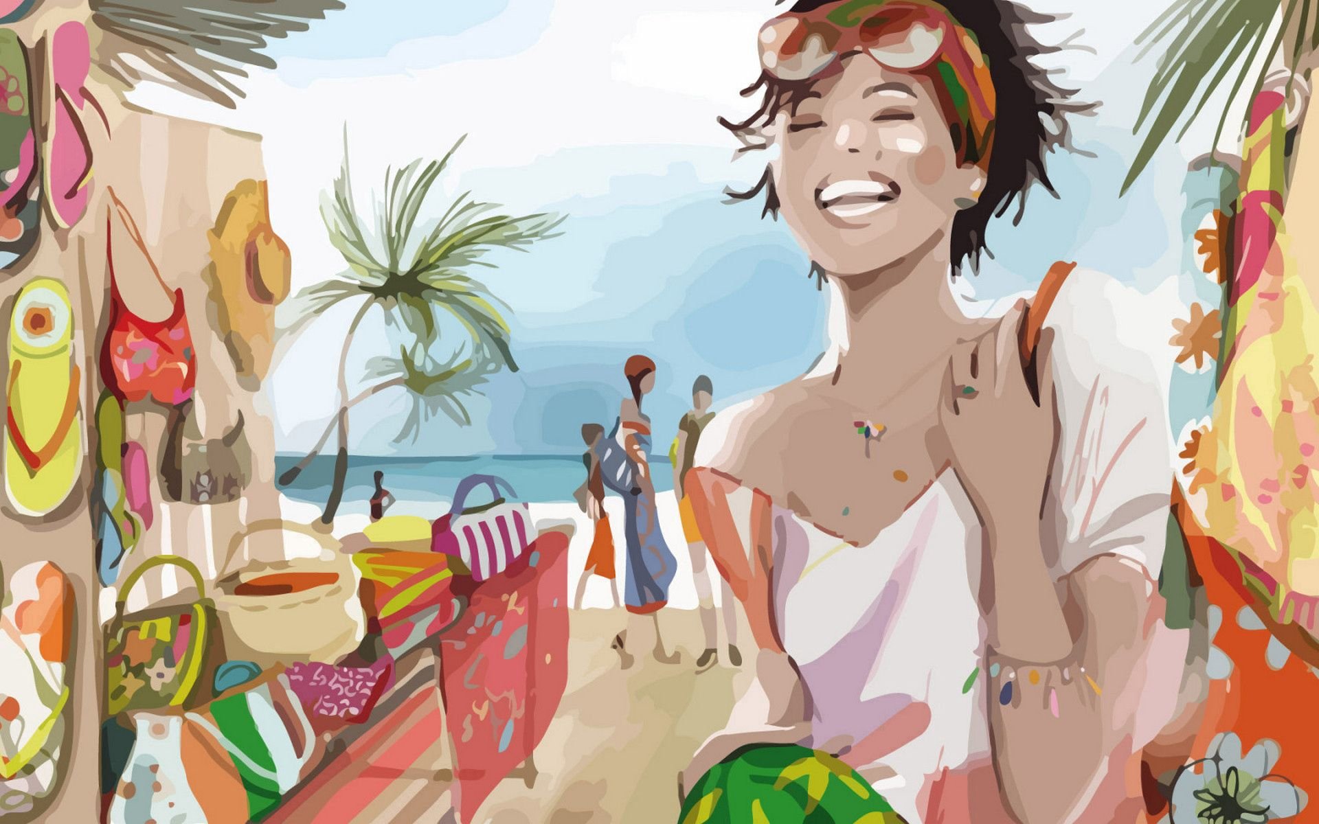 Девушка на пляже рисунок