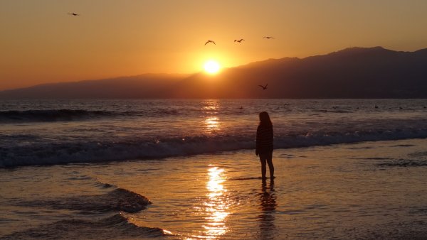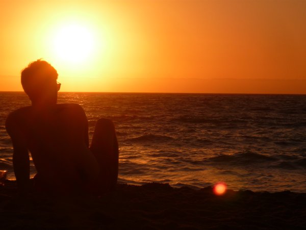 ![Человек на закате у моря]()