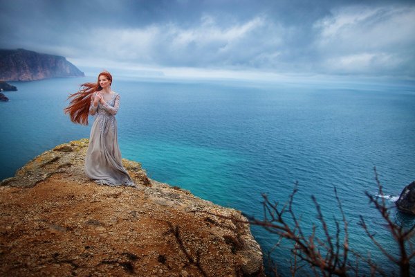 Девушка на скале у моря