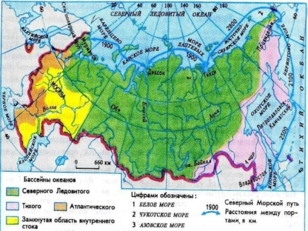Моря Северного Ледовитого океана омывающие Россию на карте