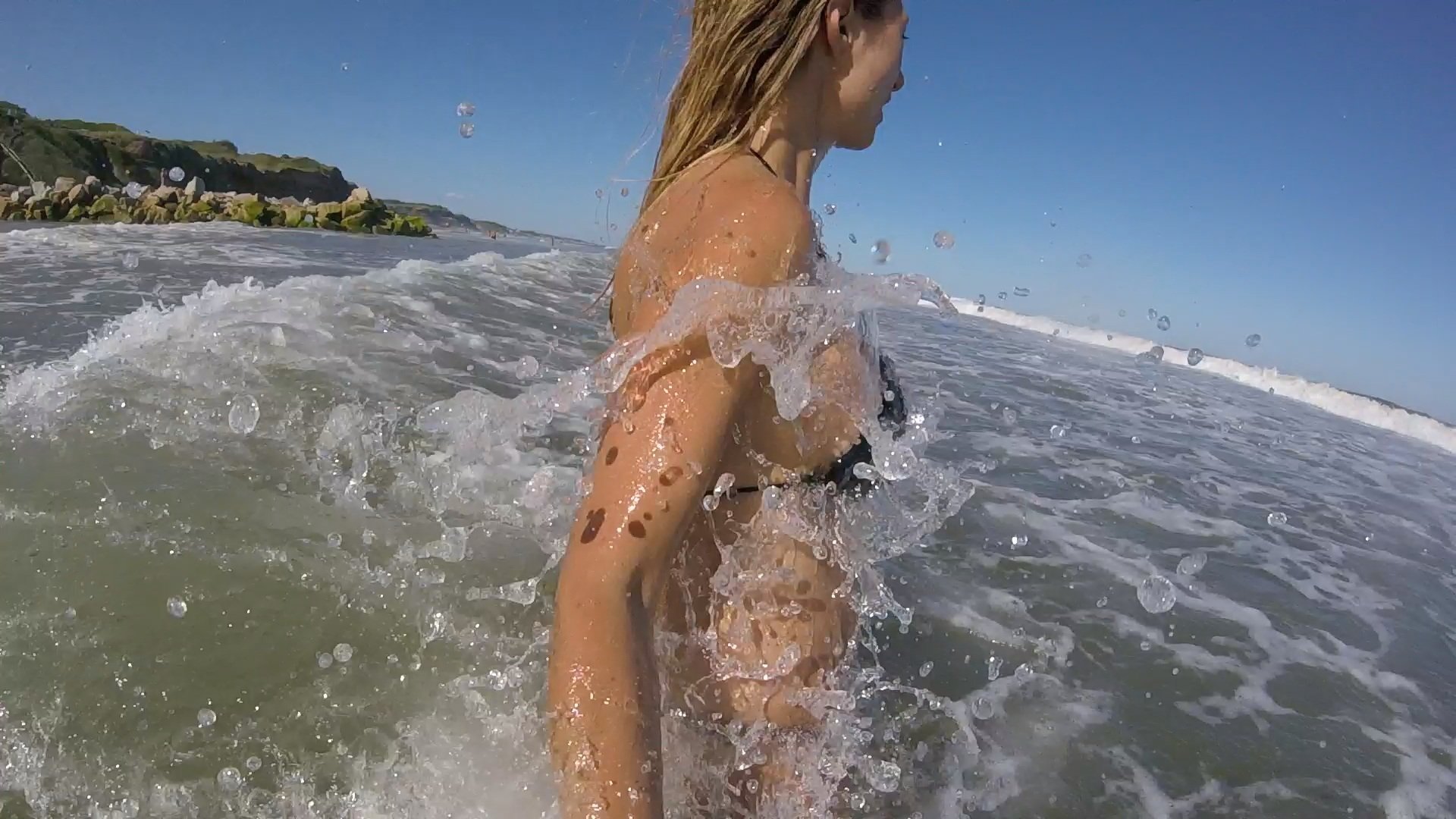 Девушка заходит в море
