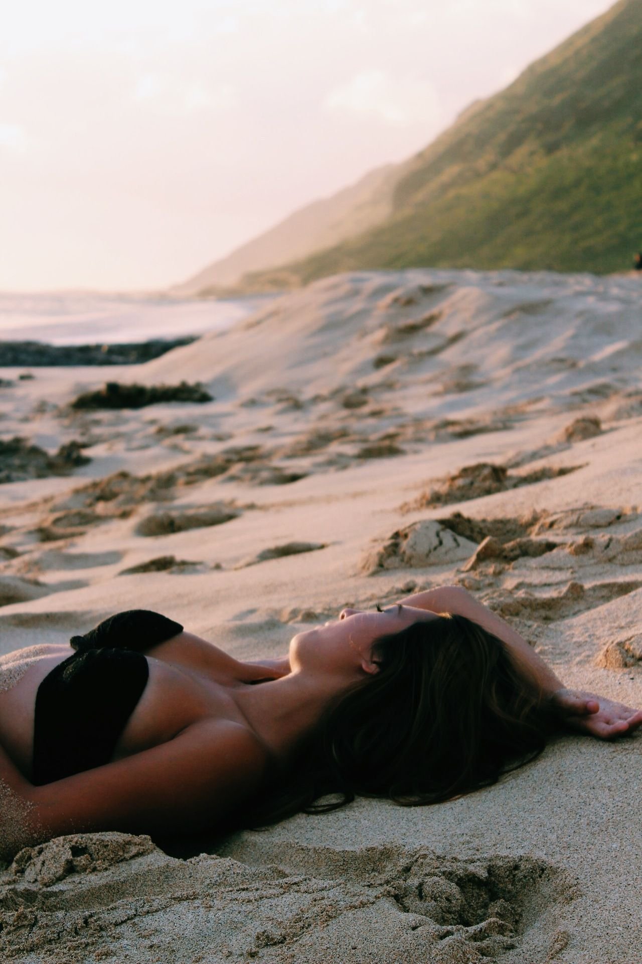 Девушка лежит на песке