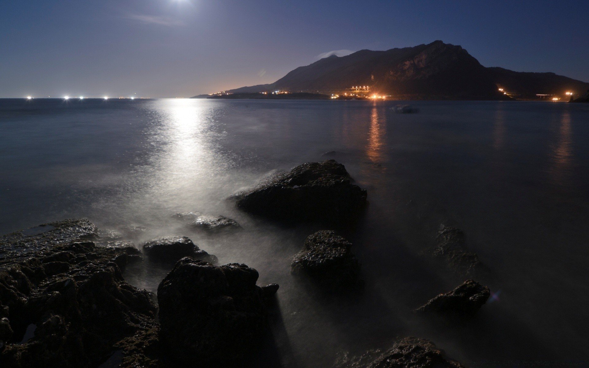 Горы и море ночью