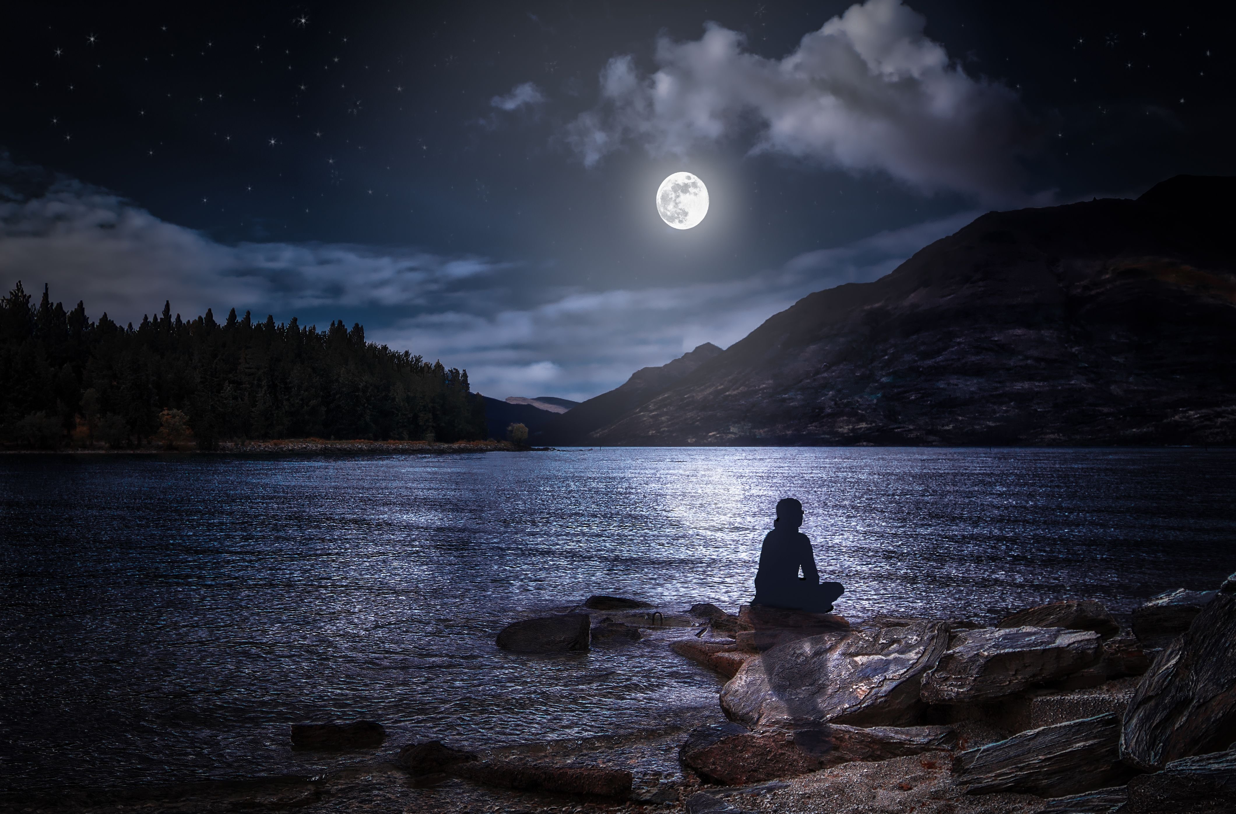 Озеро в лунном свете